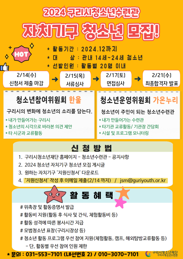 - 구리시청소년재단 청소년수련관에서 2024년도 청소년 자치기구를 이끌어 갈
