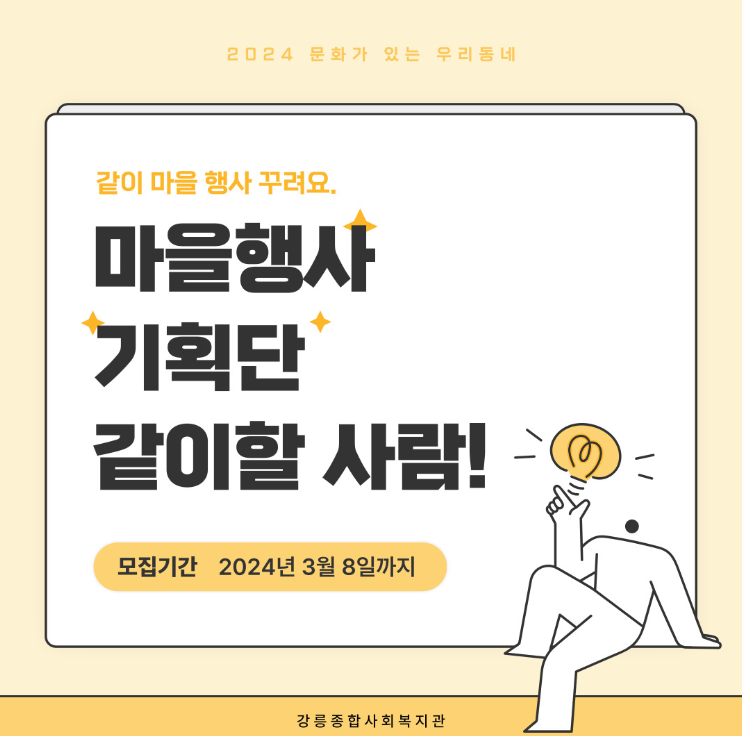 - 마을행사 기획과 준비: 우리 마을에 필요한 행사를 고민하고, 함께 준비합니다.