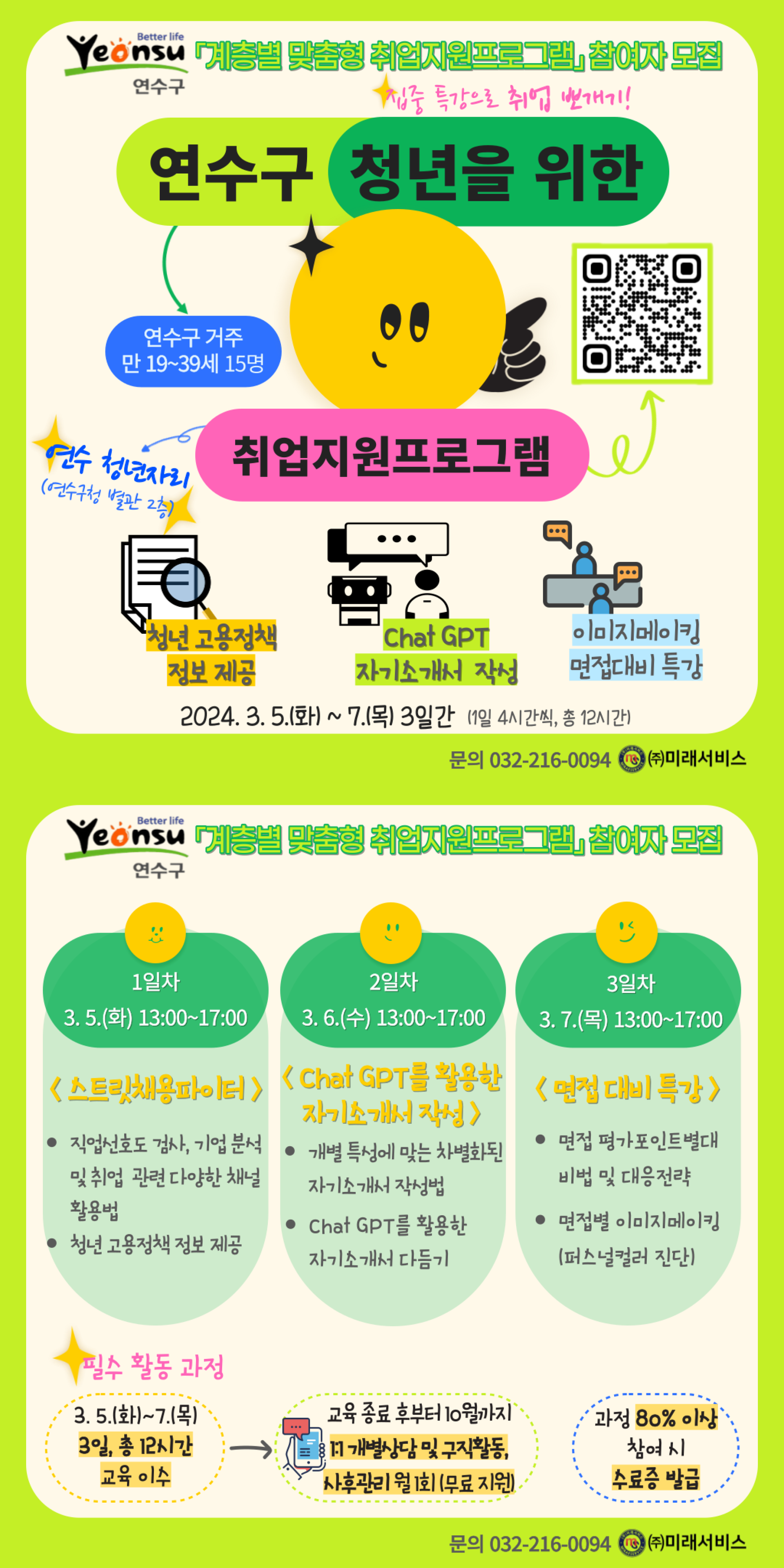 2024년 인천 연수구 계층별 맞춤형 취업지원프로그램 청년 참여자 모집