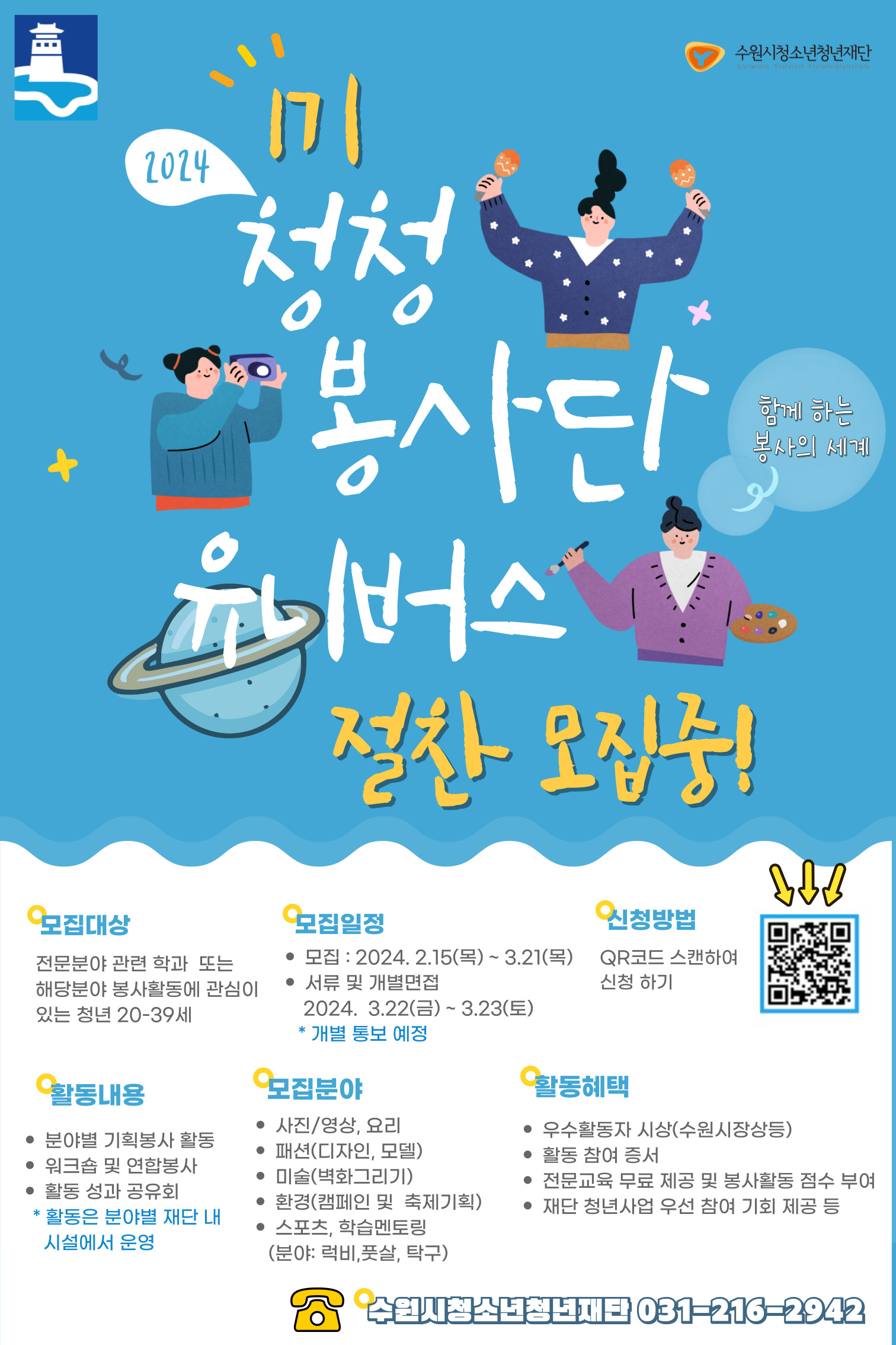 - 수원시청소년청년재단 청청 봉사단 유니버스 1기를 모집하오니