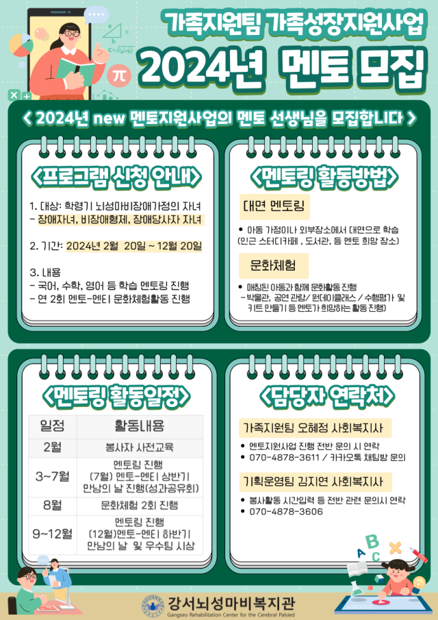 - 2024 뇌성마비장애아동 및 청소년 학습멘토링의 참여자를 모집하오니