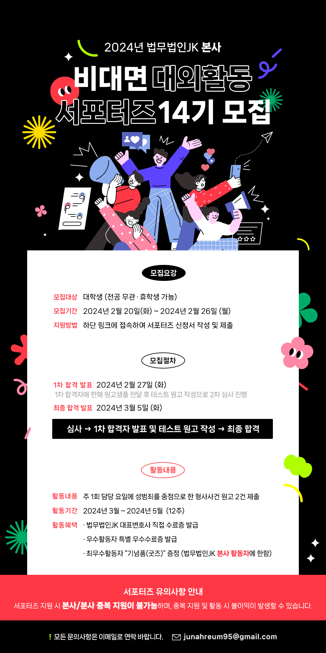 - 법무법인JK 서울 본사 서포터즈 14기를 모집하오니