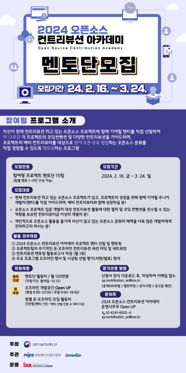 (Open UP) '24년도 오픈소스 컨트리뷰션 아카데미 멘토단(참여형) 모집