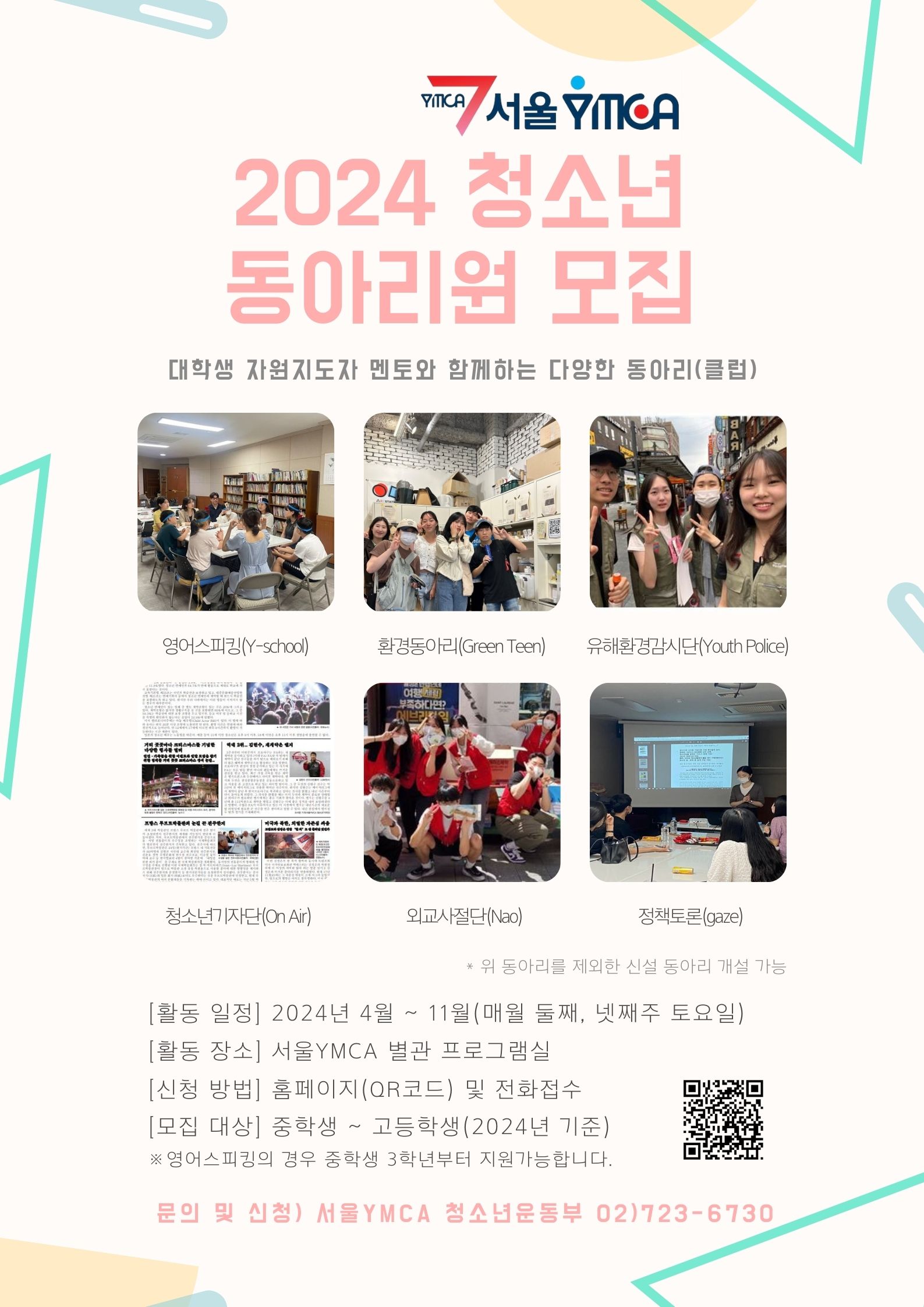- 2024 서울YMCA 청소년 동아리원을 모집하오니
