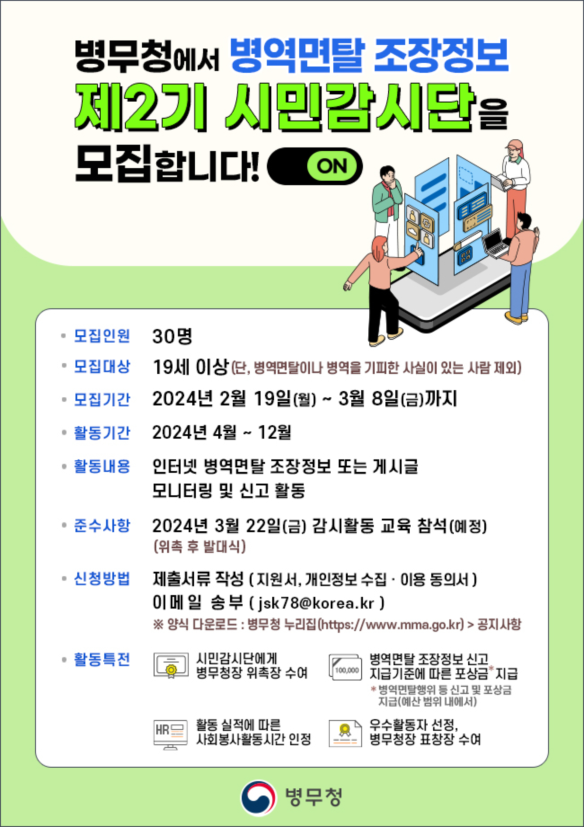 - 제2기 병역면탈 조장정보 시민감시단을 모집하오니