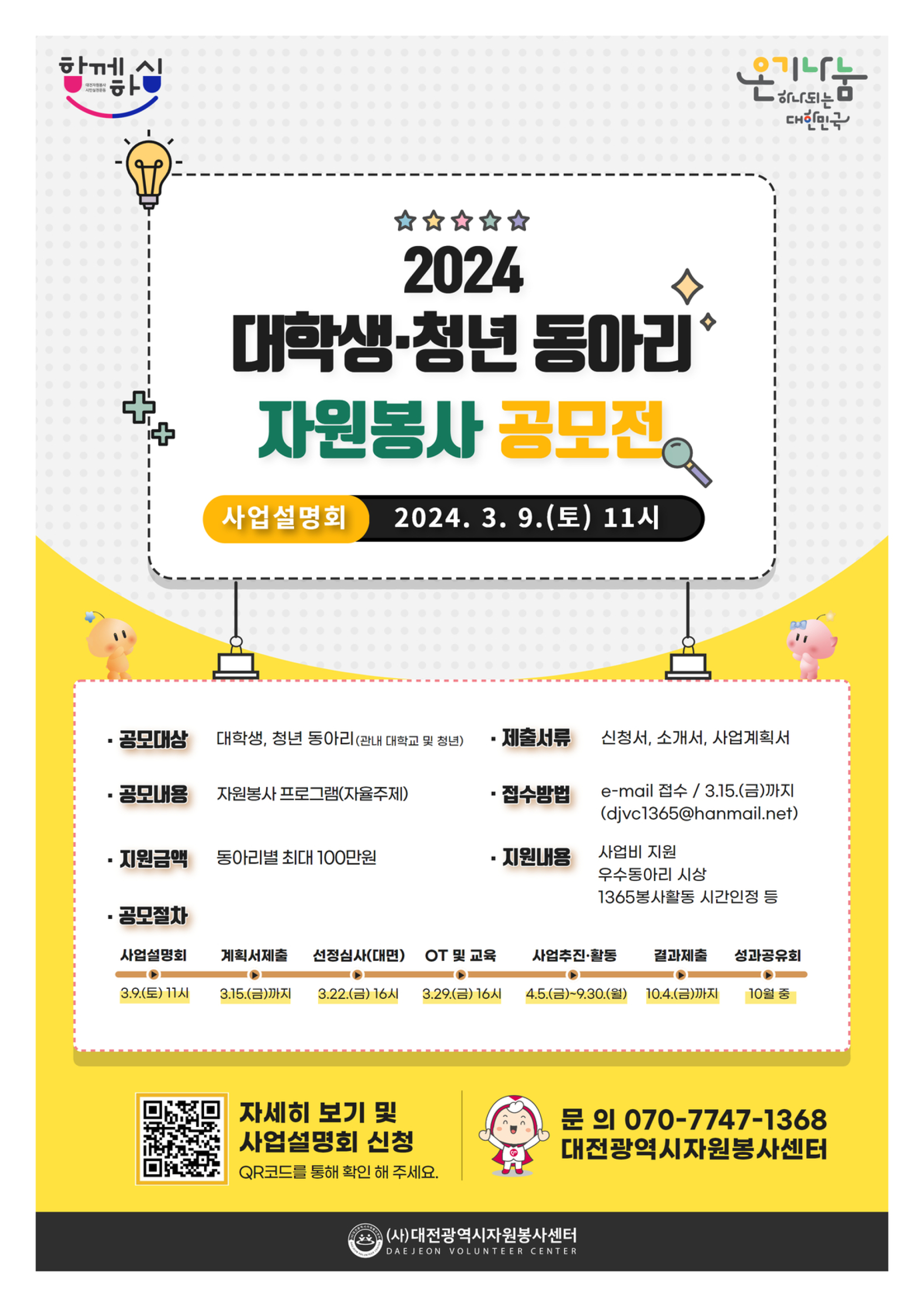 - 대전광역시자원봉사센터 ☏ 070-7747-1368