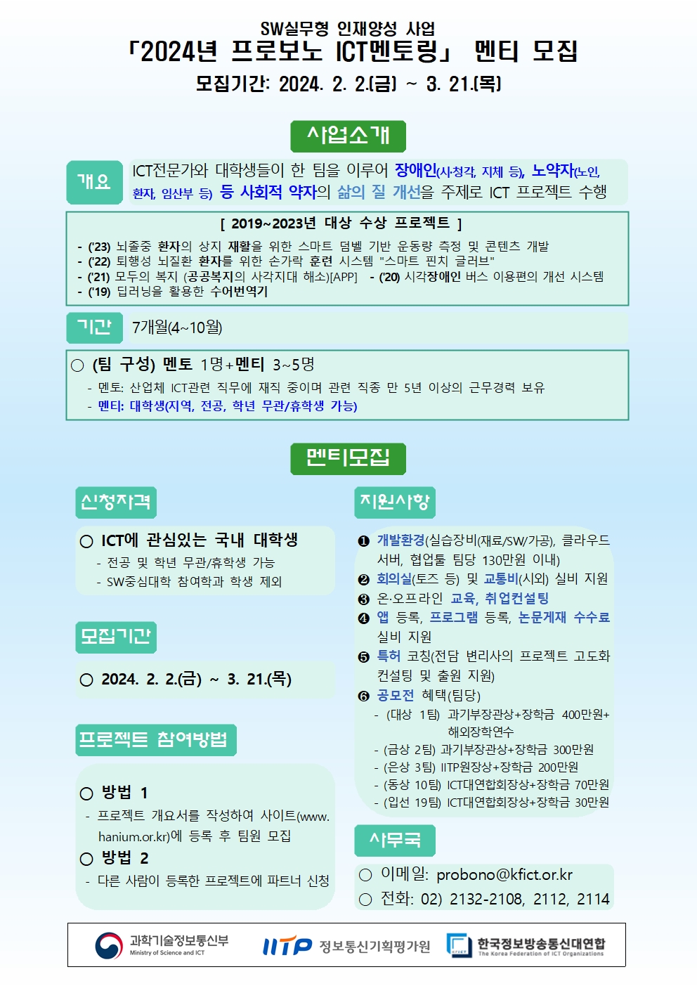 2024년 프로보노 ICT멘토링 프로젝트 및 참여자 모집