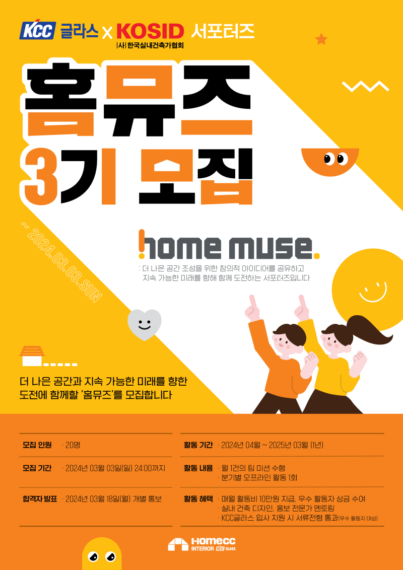 2024년 KCC글라스x한국실내건축가협회 서포터즈 홈뮤즈 3기 모집