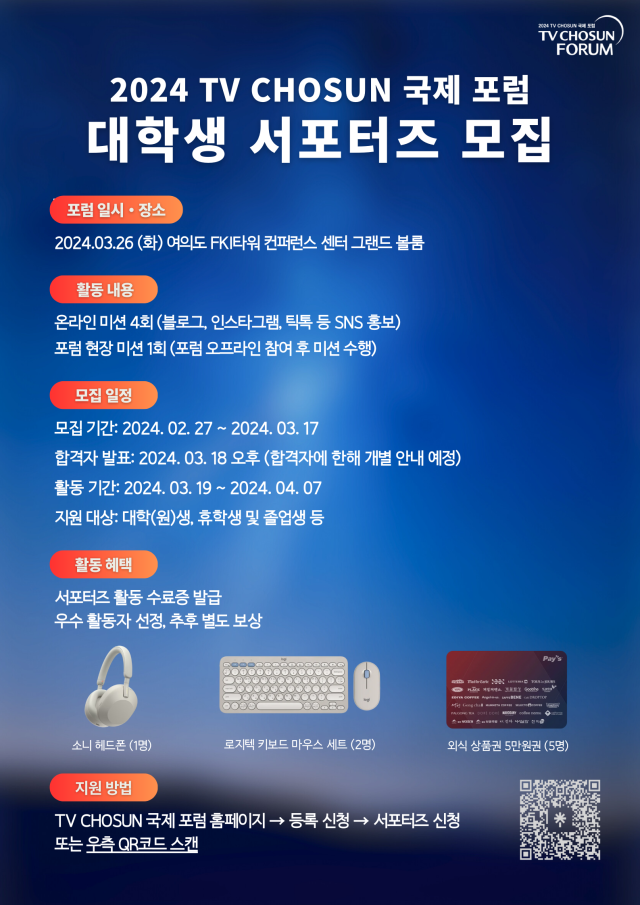 - 2024 TV CHOSUN 제8회 국제 포럼 서포터즈를 모집하오니