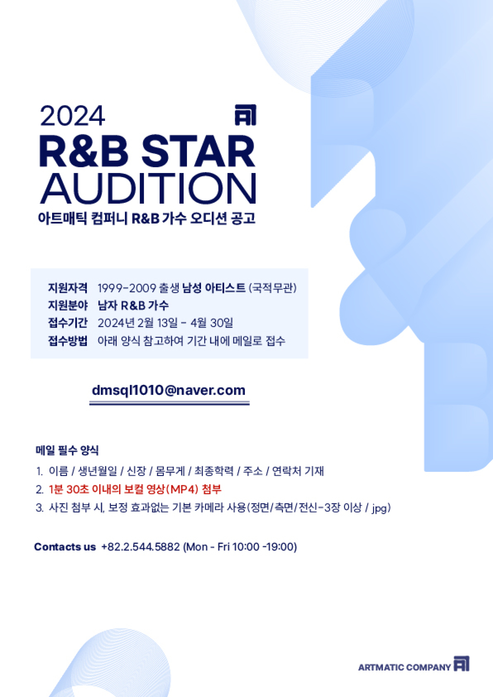 - 2024 아트매틱 컴퍼니 R&B 가수 오디션을 개최하오니
