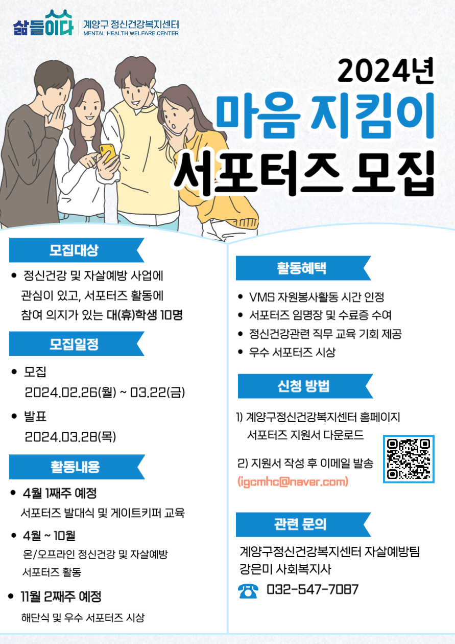 - 온/오프라인 정신건강 및 자살예방 서포터즈