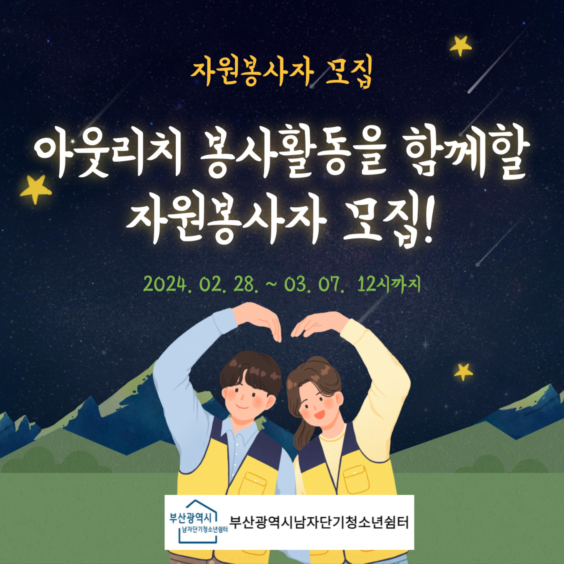 부산광역시남자단기청소년쉼터 아웃리치 자원봉사자 모집