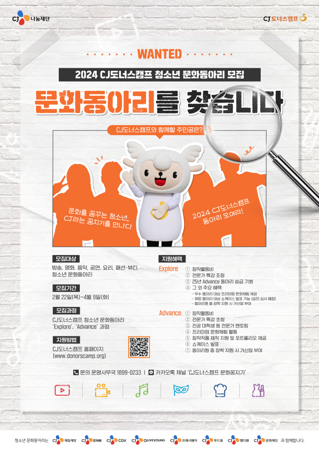 2024년 CJ도너스캠프 청소년 문화동아리 모집
