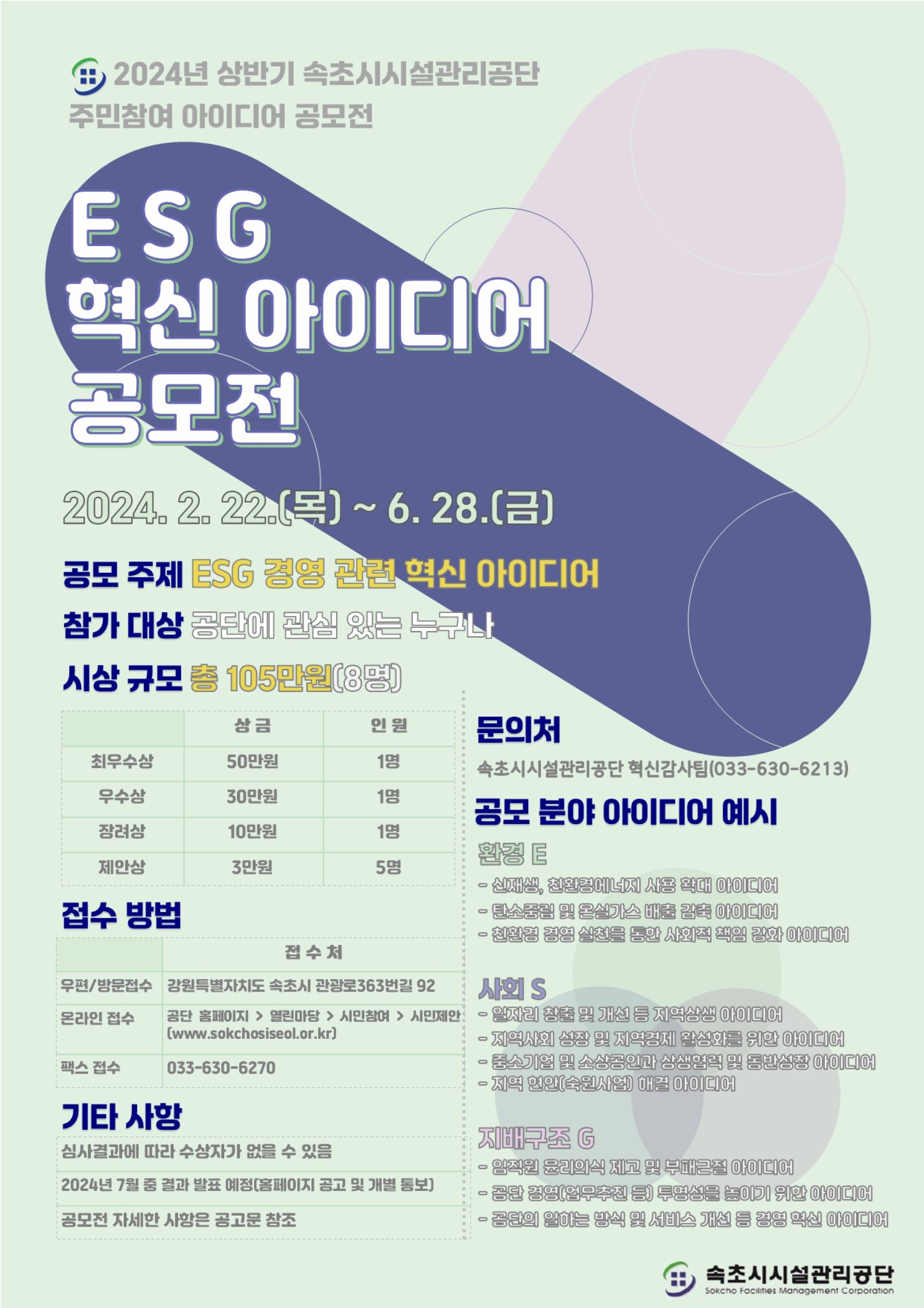 2024년 상반기 속초시시설관리공단 ESG 혁신아이디어 공모전을