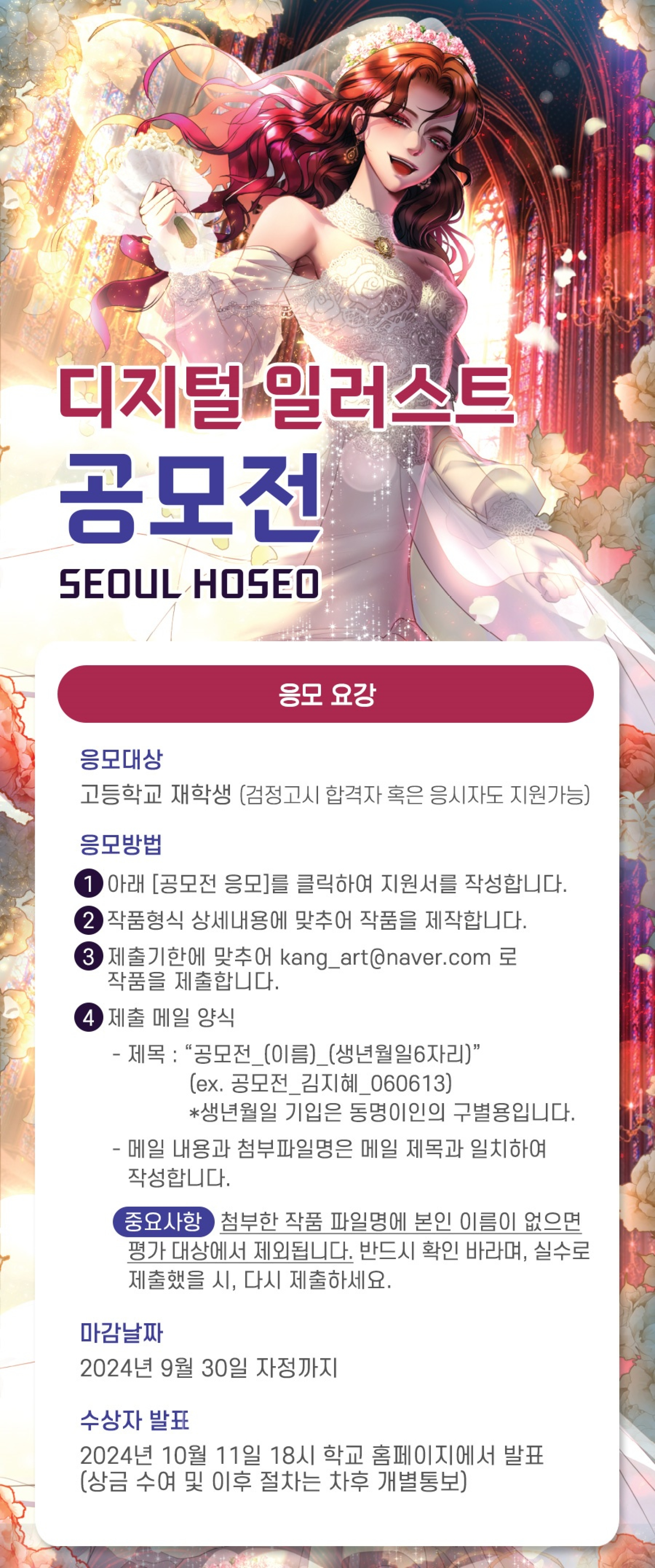- 우수상(3명) : 상금 30만원 / 서울호서 입학 시 1학년
