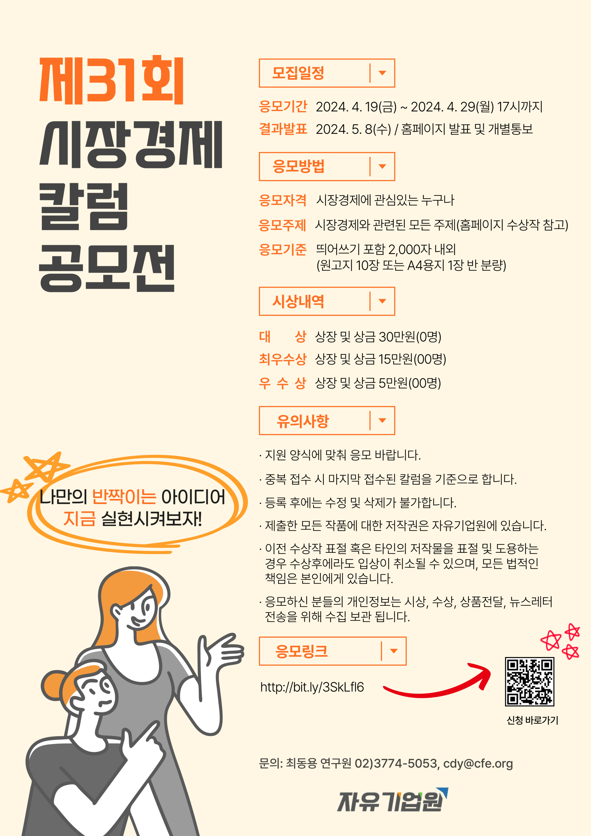 - 자유기업원에서 제31회 시장경제칼럼 공모전을