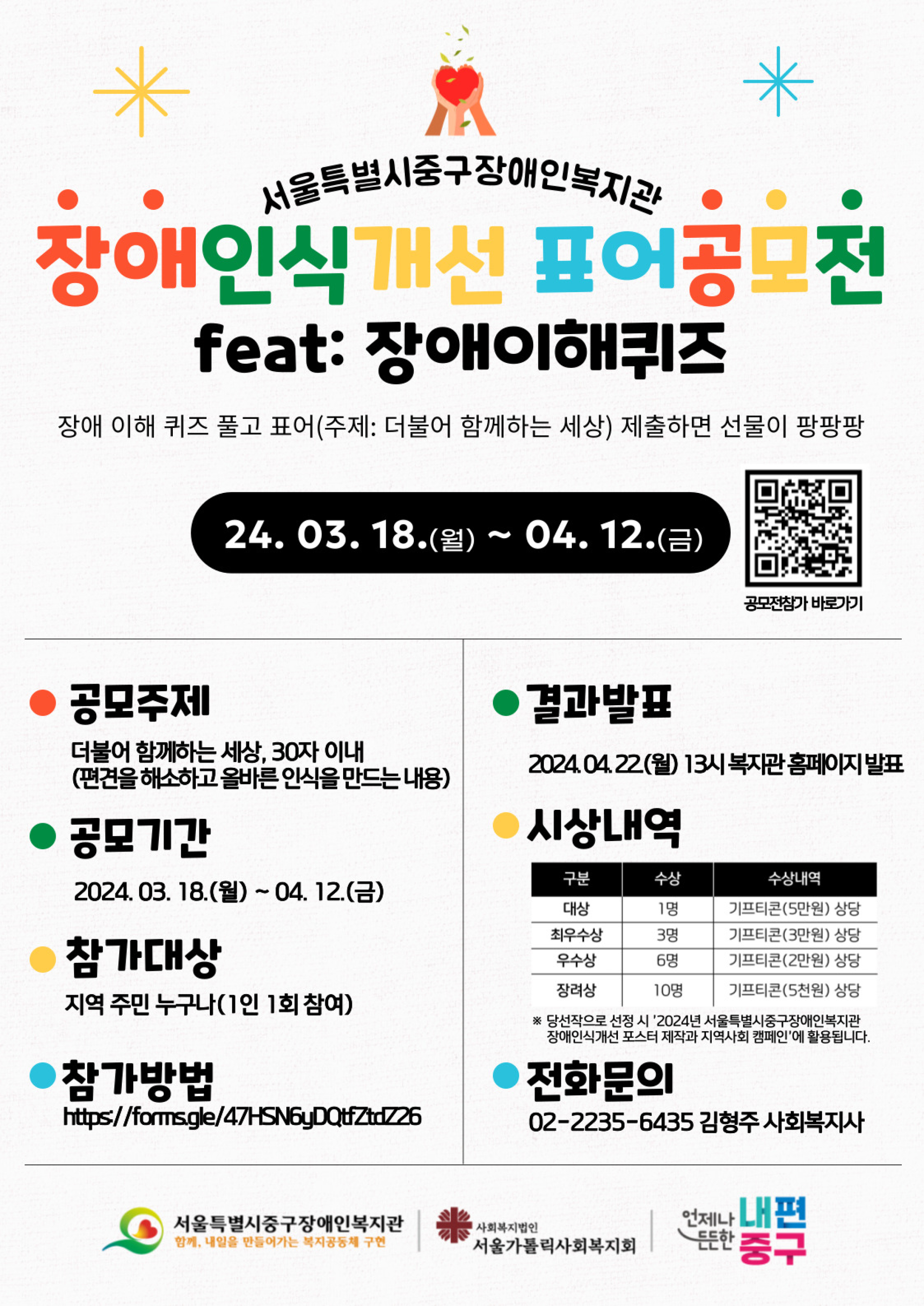 2024 서울특별시중구장애인복지관 장애인식개선 표어공모전