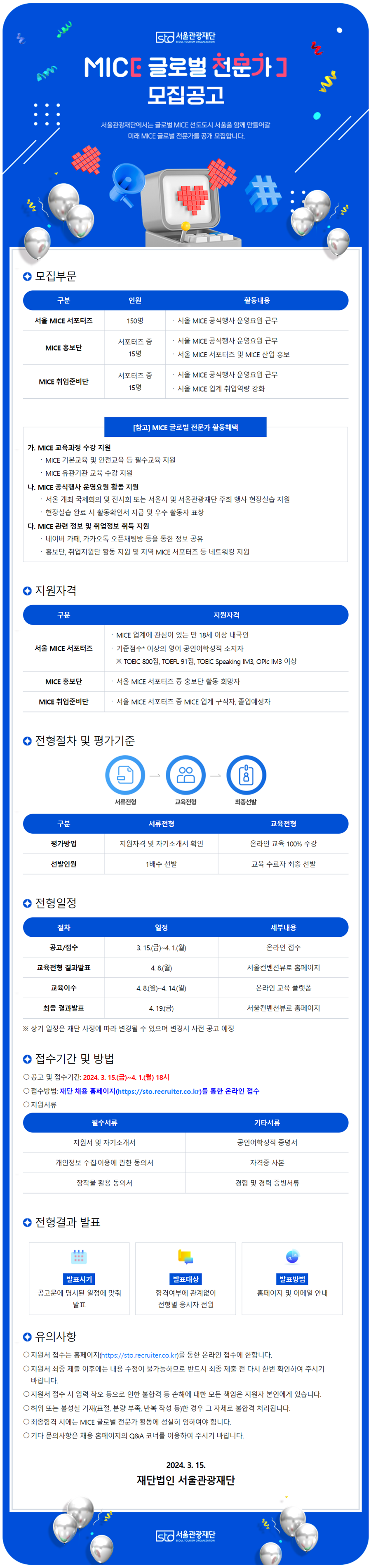 - MICE 취업준비단 : 서울 MICE 공식행사 운영요원 근무/