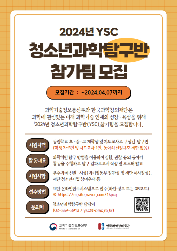 2024년 청소년과학탐구반(YSC) 참가팀 모집 공고