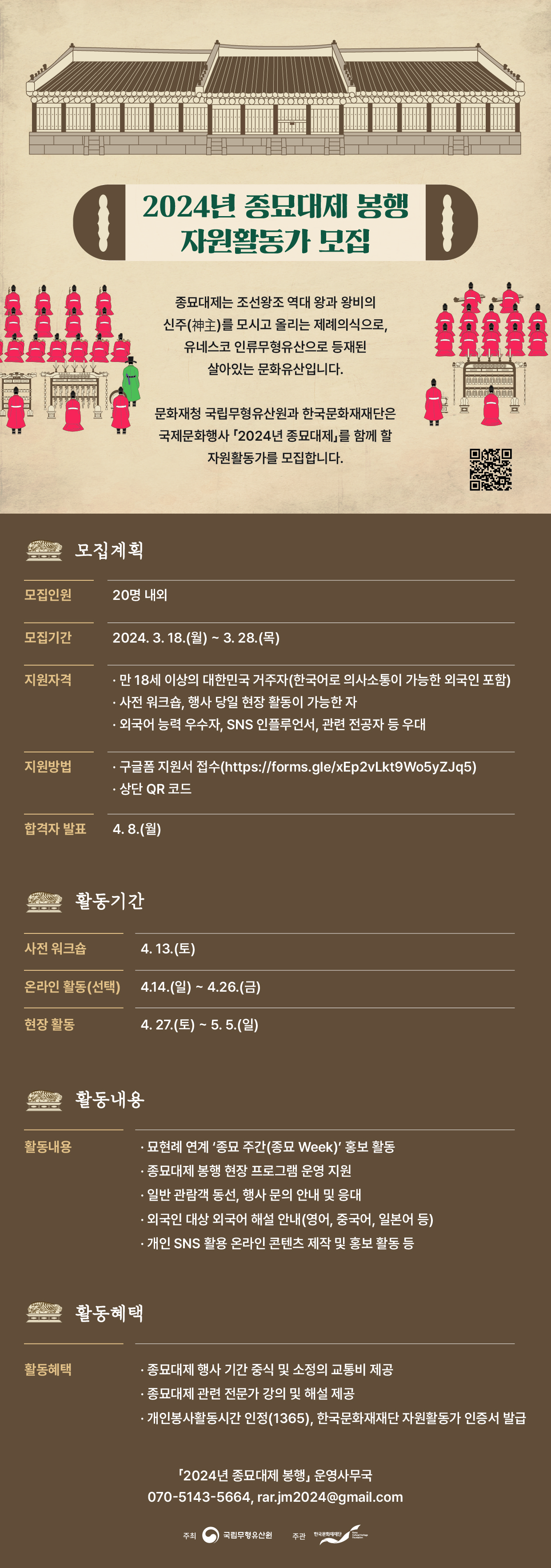 국제문화행사 「2024년 종묘대제」를 함께 할 자원활동가를