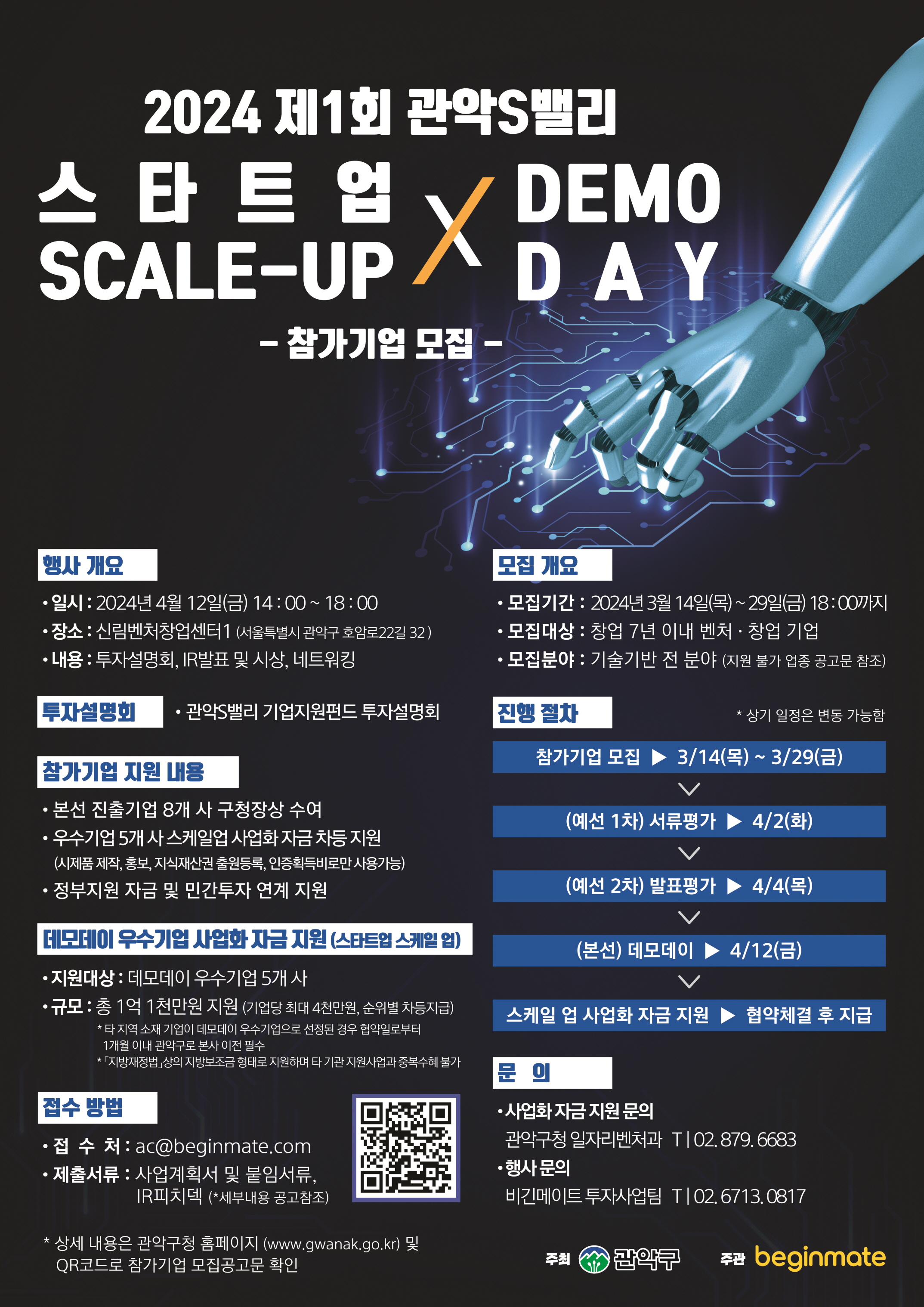 2024년 제1회 관악S밸리 「스타트업 스케일 업 × 데모데이」 참가기업 모집