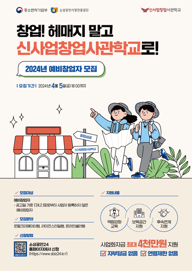 2024년 신사업창업사관학교(서울) 예비창업자 모집 기간 연장