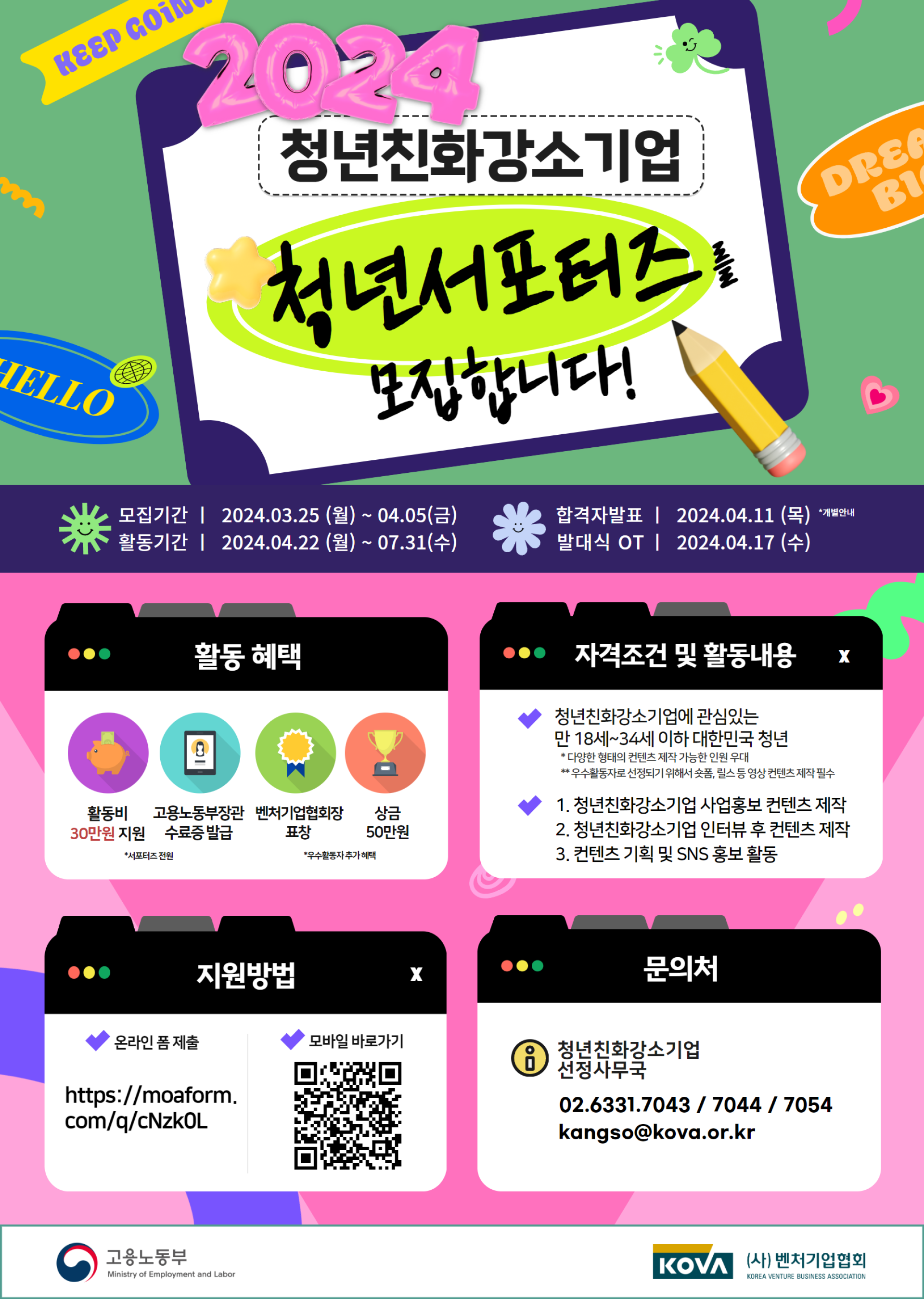 | 혜택 | 활동비 30만원 / 고용노동부장관 수료증 |