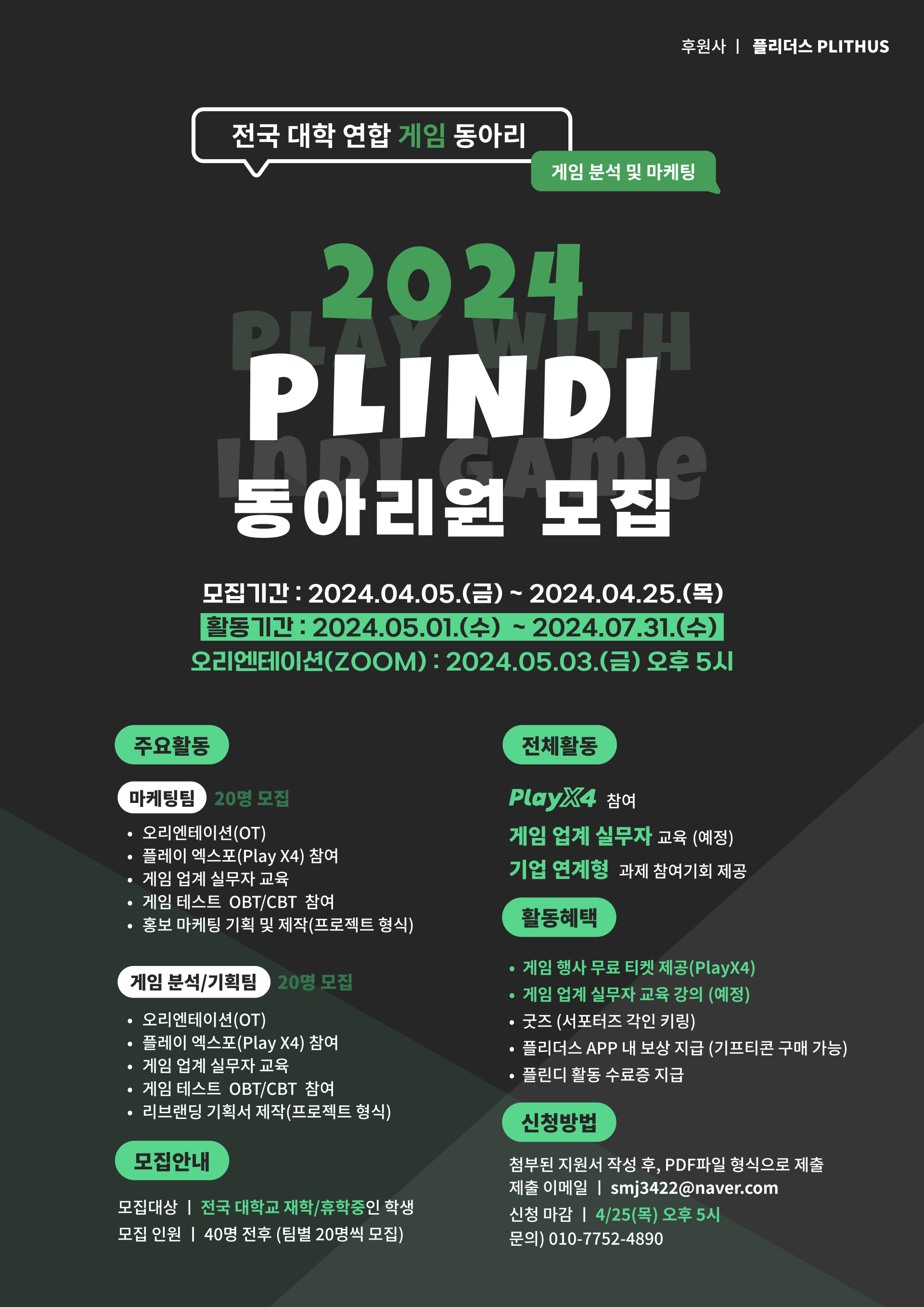 전국 대학 연합 게임 동아리 PLINDI 플린디 부원 모집