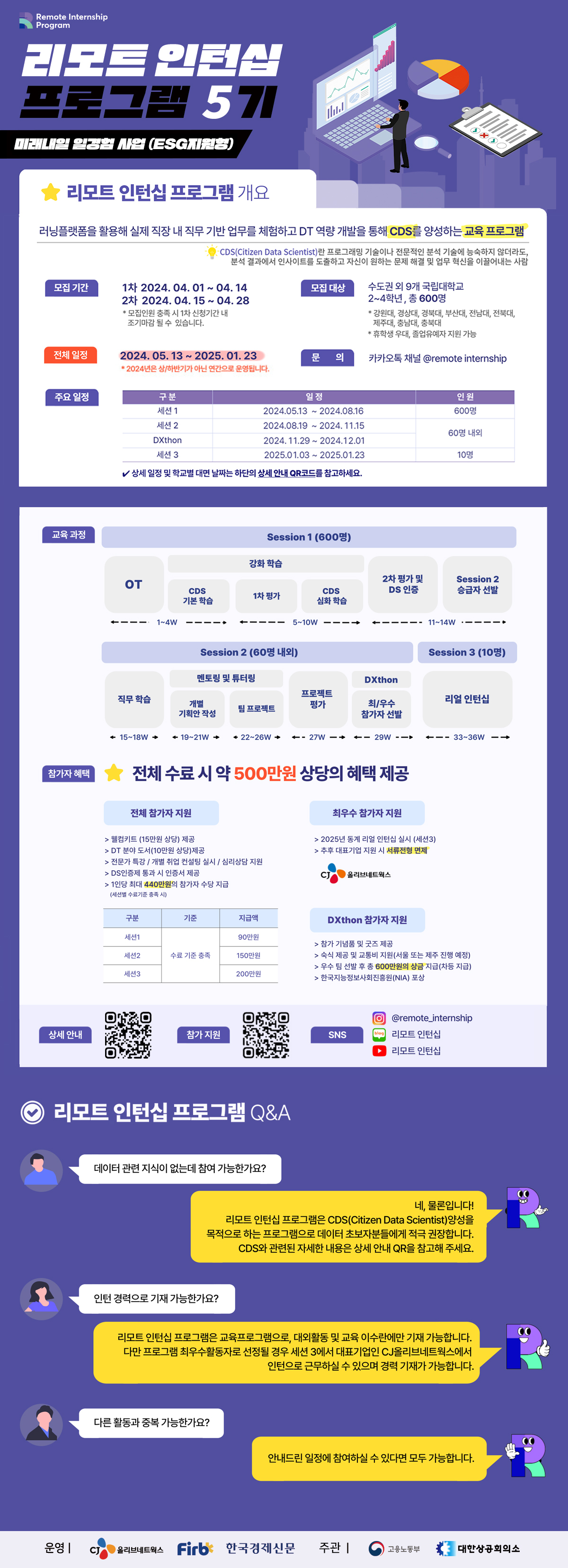 - 숙식 제공 및 교통비 지원 (서울 또는 제주 진행예정)