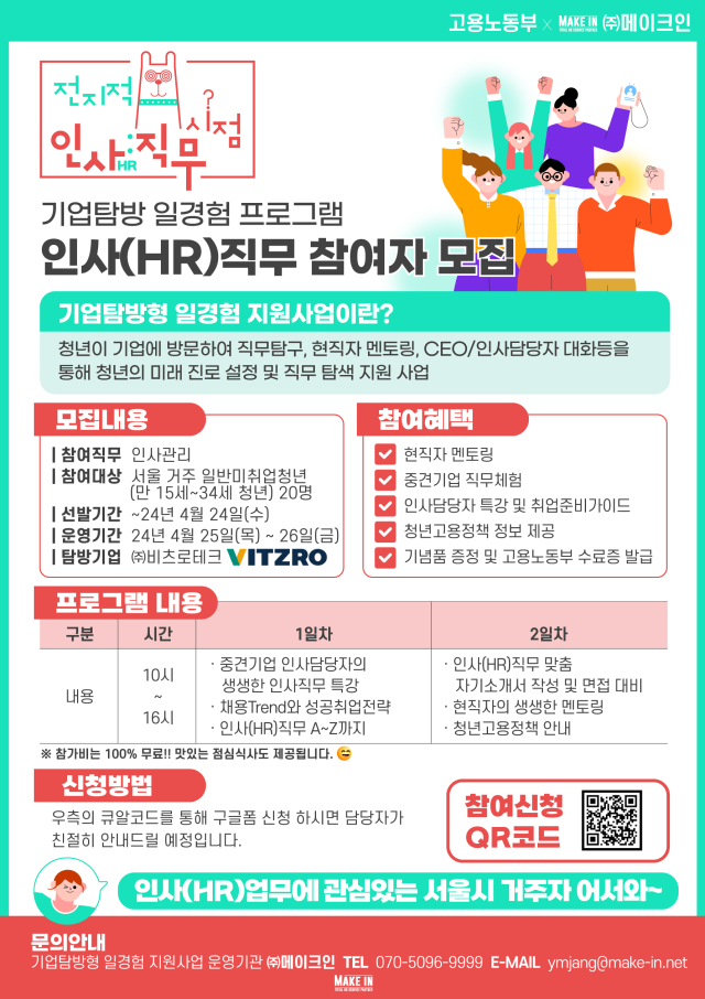 [고용노동부_기업탐방형 일경험] 인사직무(HR)체험 프로그램 참여자 모집