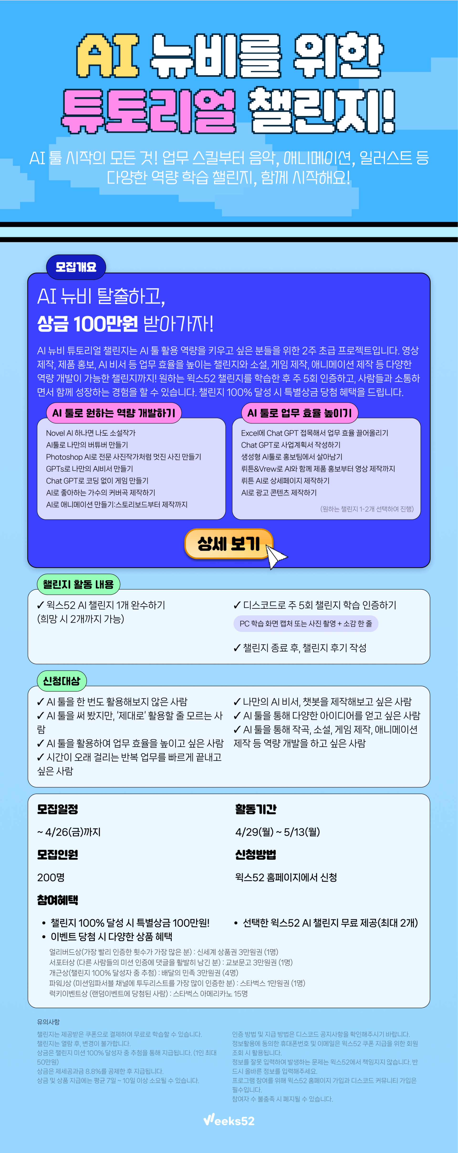 - 윅스52 AI 챌린지 1개 완수하기 (희망 시 2개까지 가능)