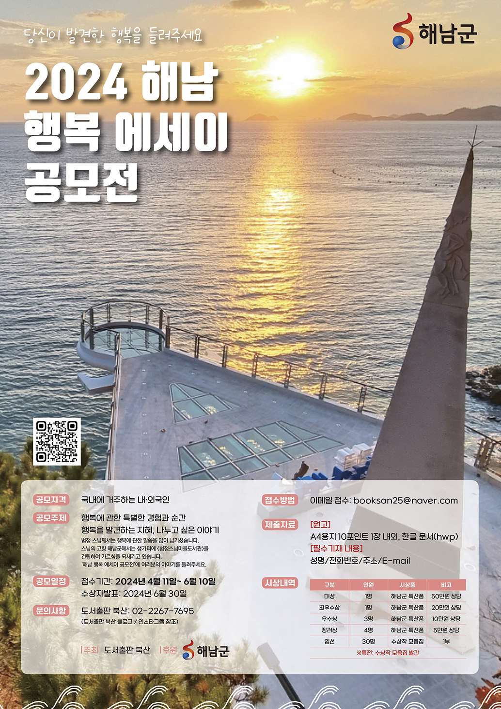 첨부파일 다운로드2024 해남 행복 에세이 공모전 _보도자료도서출판 북산.hwp