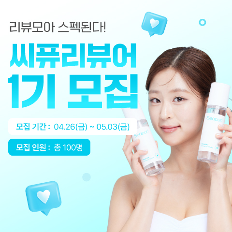 - 최우수 활동자 20만원 상당 씨퓨리 스킨케어 라인 무료 제공