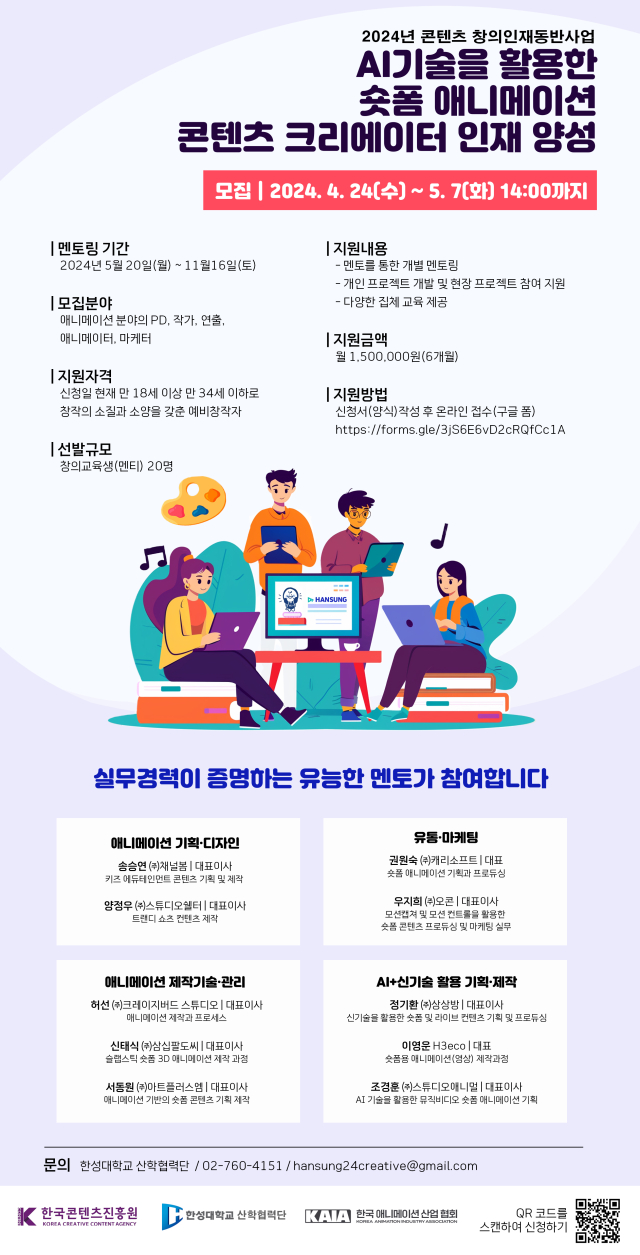 2024년 콘텐츠 창의인재동반사업 ‘창의교육생(멘티)’ 모집 공지