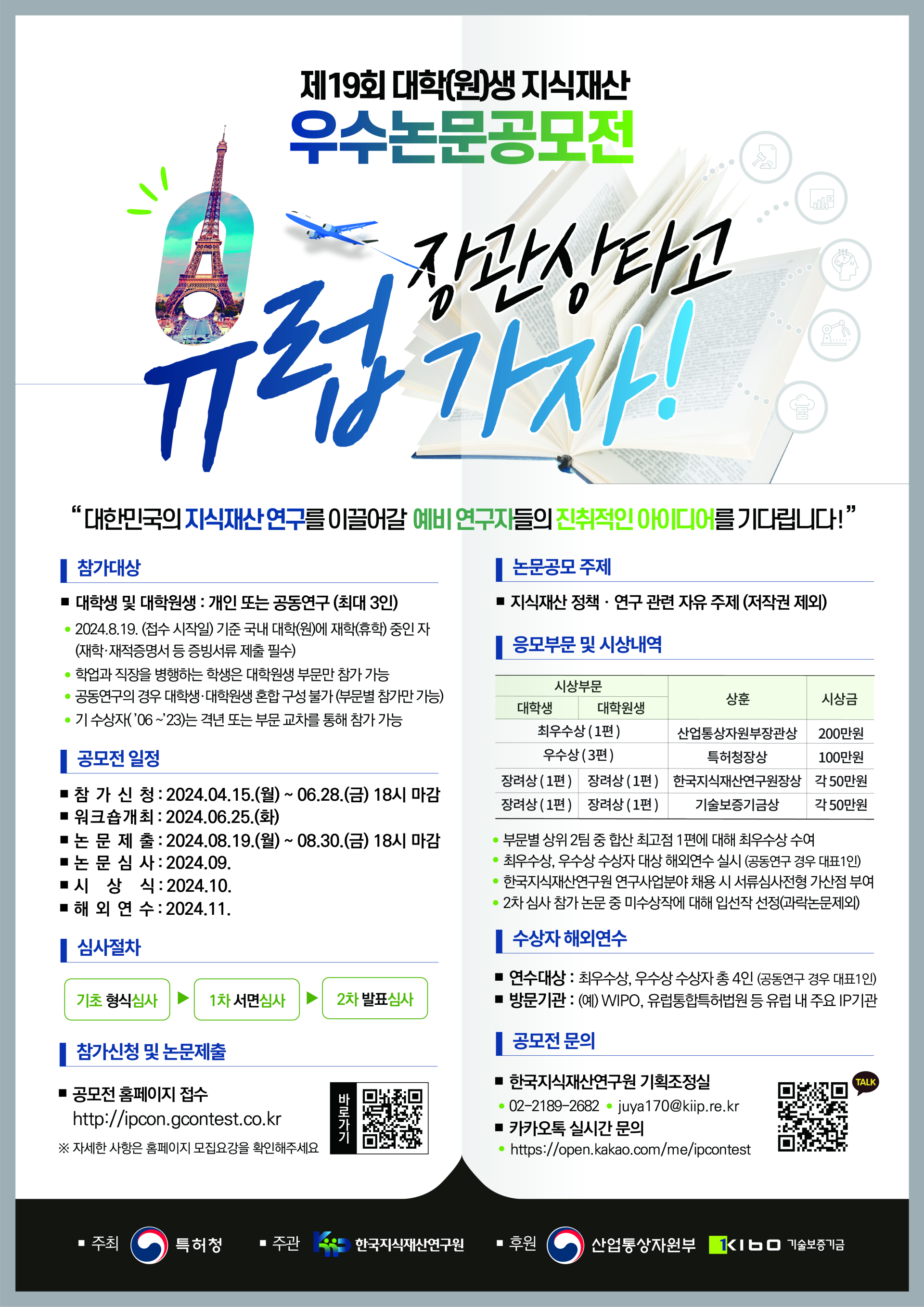 - 실시간문의 : 카카오톡 오픈채팅 「IP논문공모전」