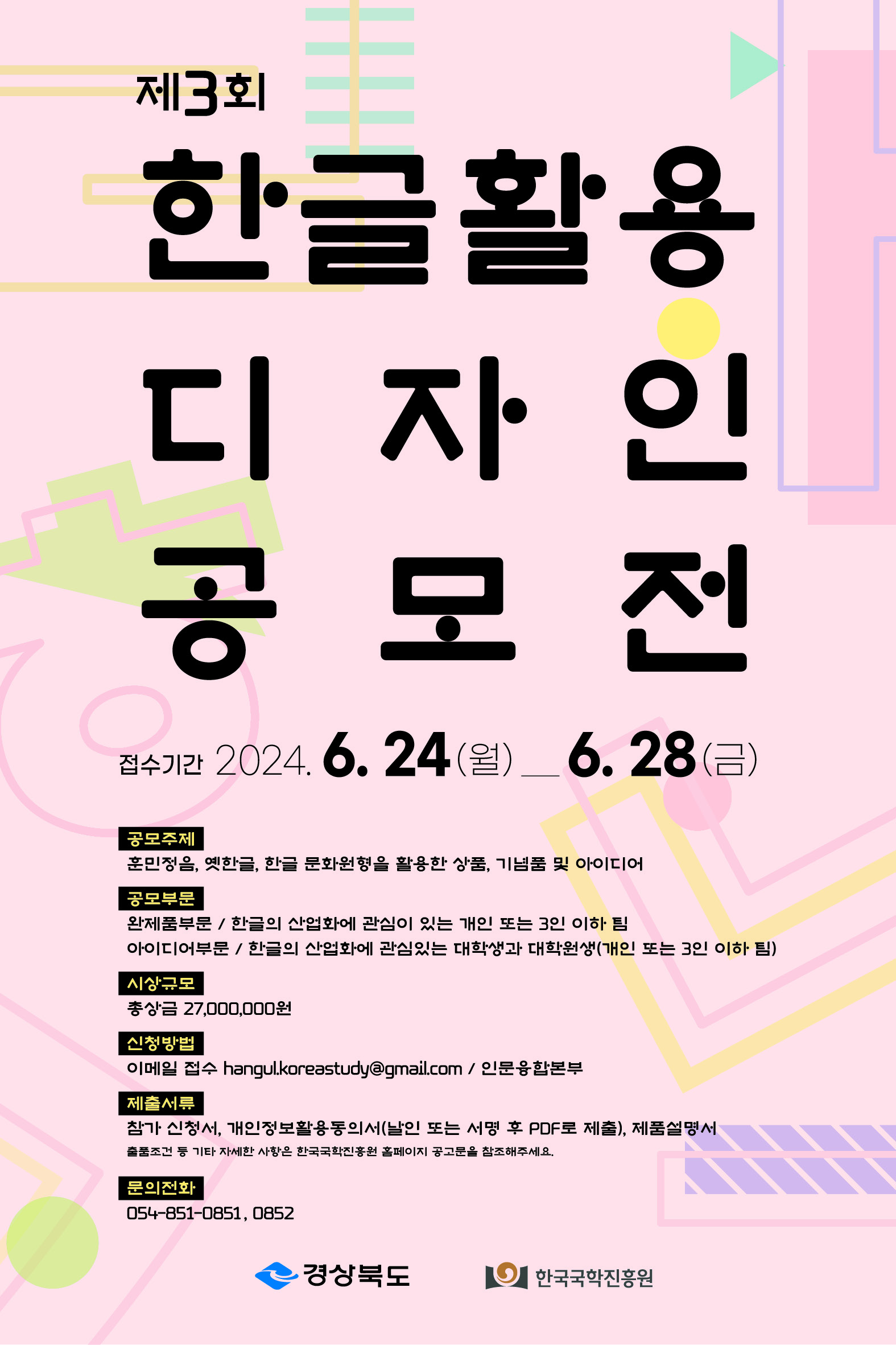 - 가. 공모명: 2024년 제3회 한글 활용 디자인 공모전