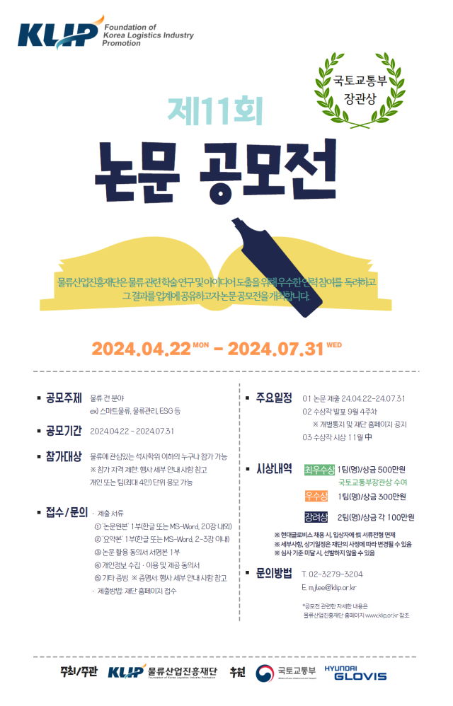 - 물류산업진흥재단은 물류 관련 학술 연구 및 아이디어 도출을 위해