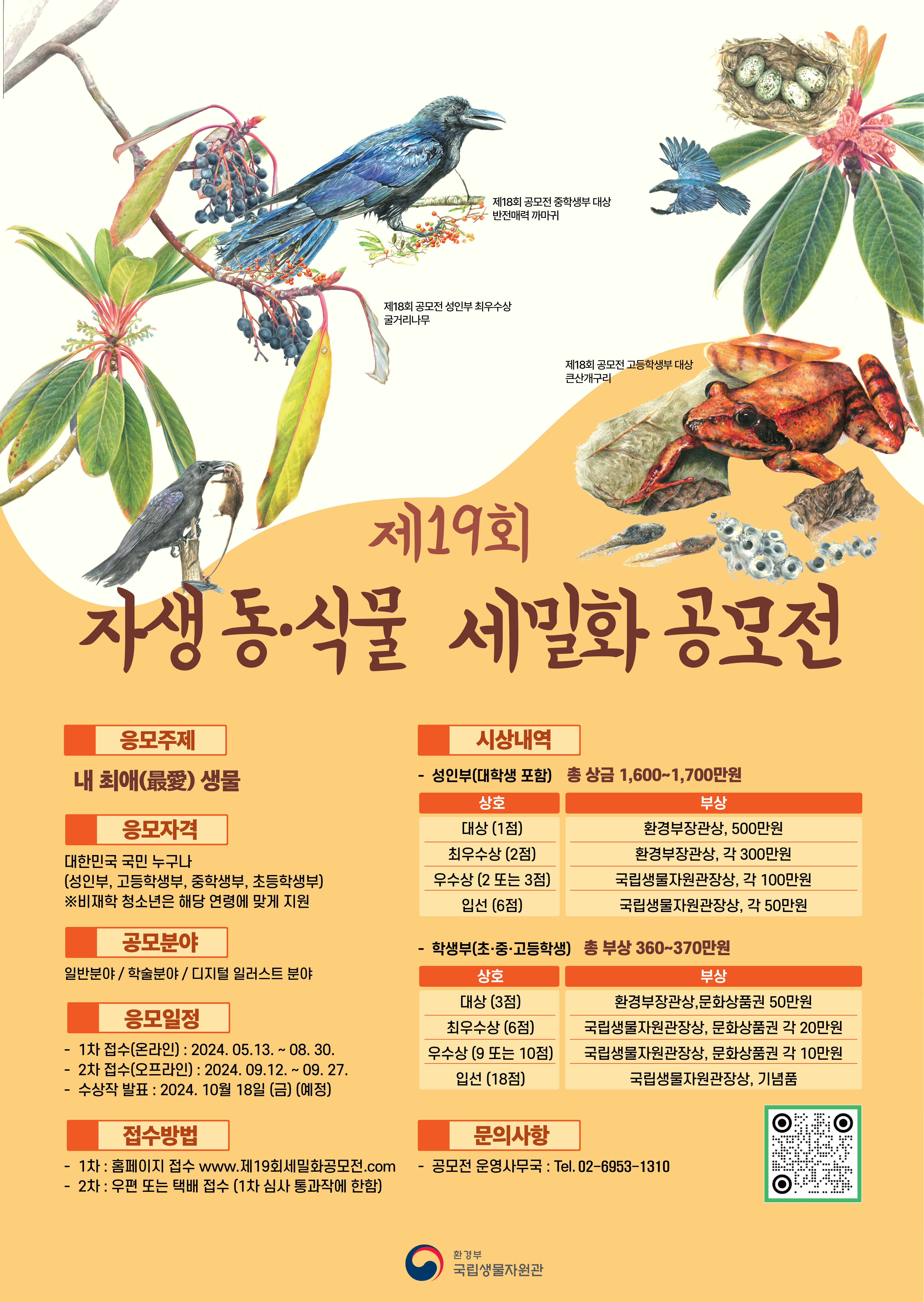 - 제19회 자생 동·식물 세밀화 공모전 운영사무국 (02-6953-1310)