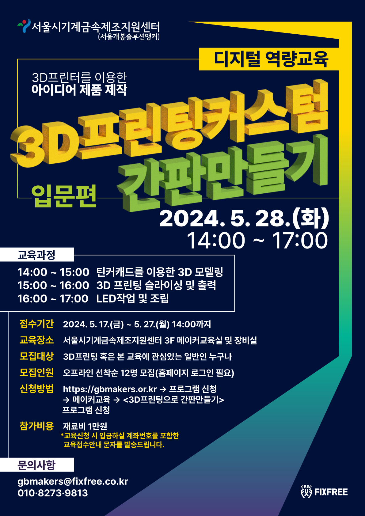 「서울시기계금속제조지원센터」디지털역량교육 <3D프린팅으로 커스텀 간판만들기> 참여자 모집