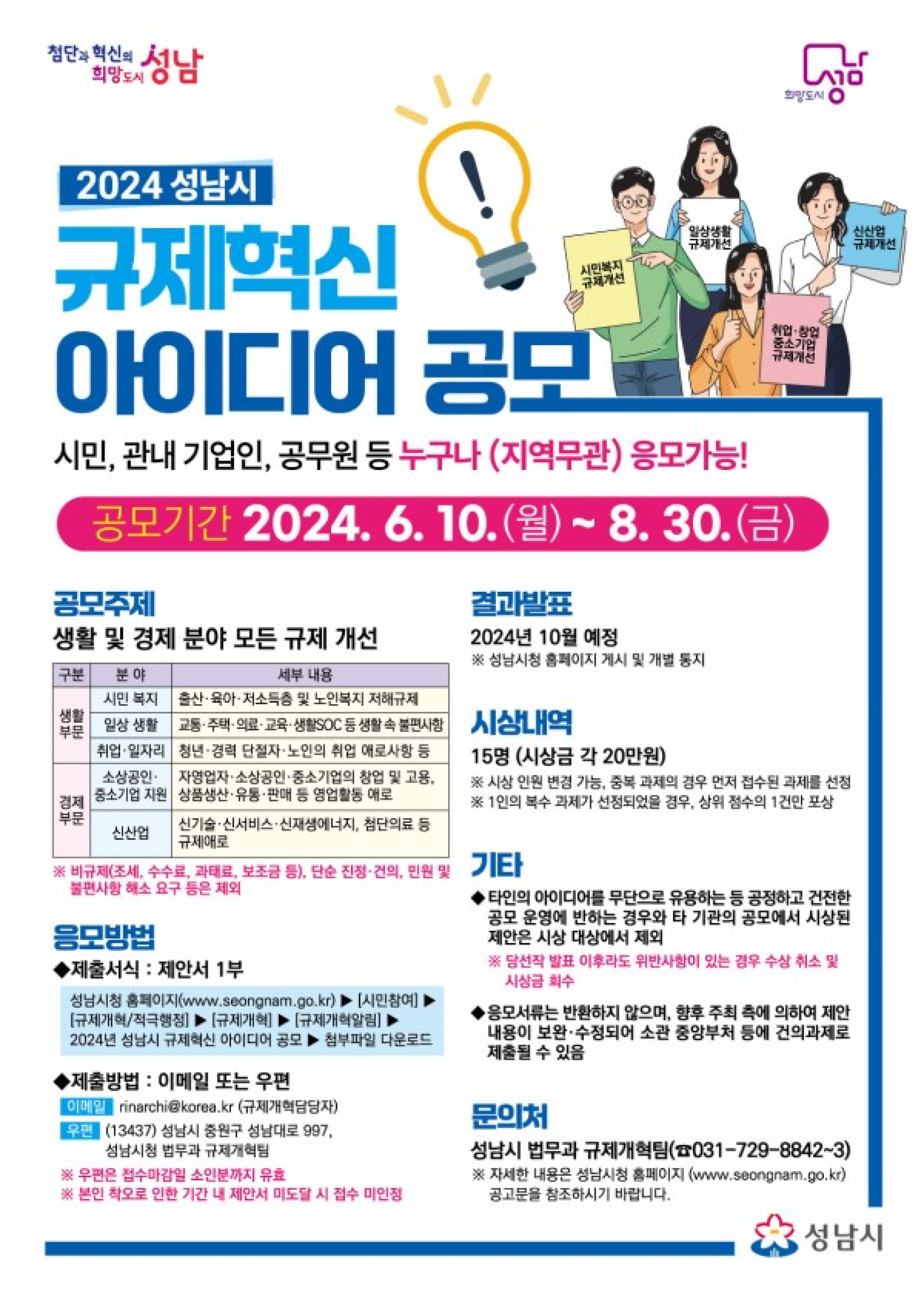 「2024년 성남시 규제혁신 아이디어 공모전」을 개최합니다.