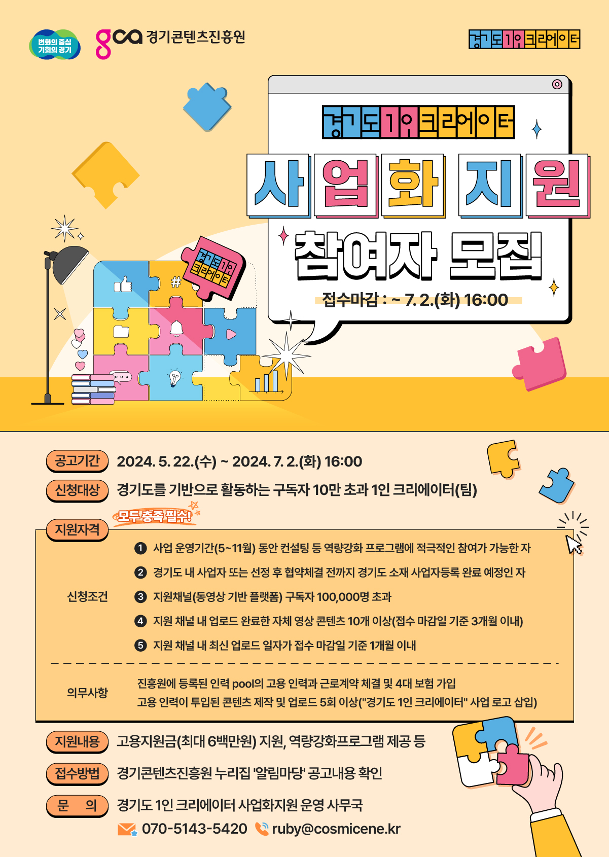 2024 경기도1인크리에이터 사업화지원 크리에이터 모집