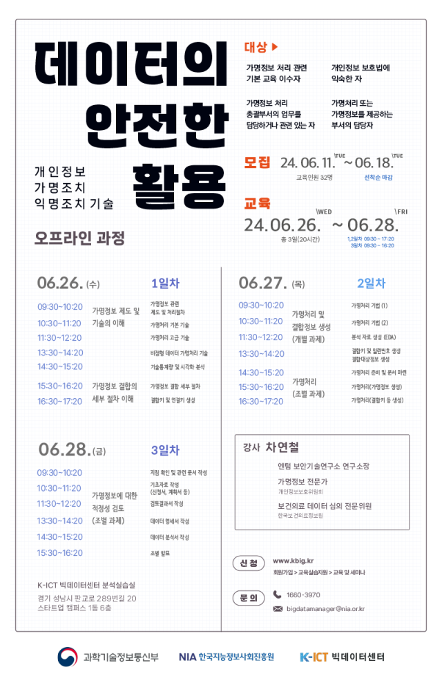 데이터의 안전한 활용 : 개인정보 가명조치 익명조치 기술 오프라인 과정
