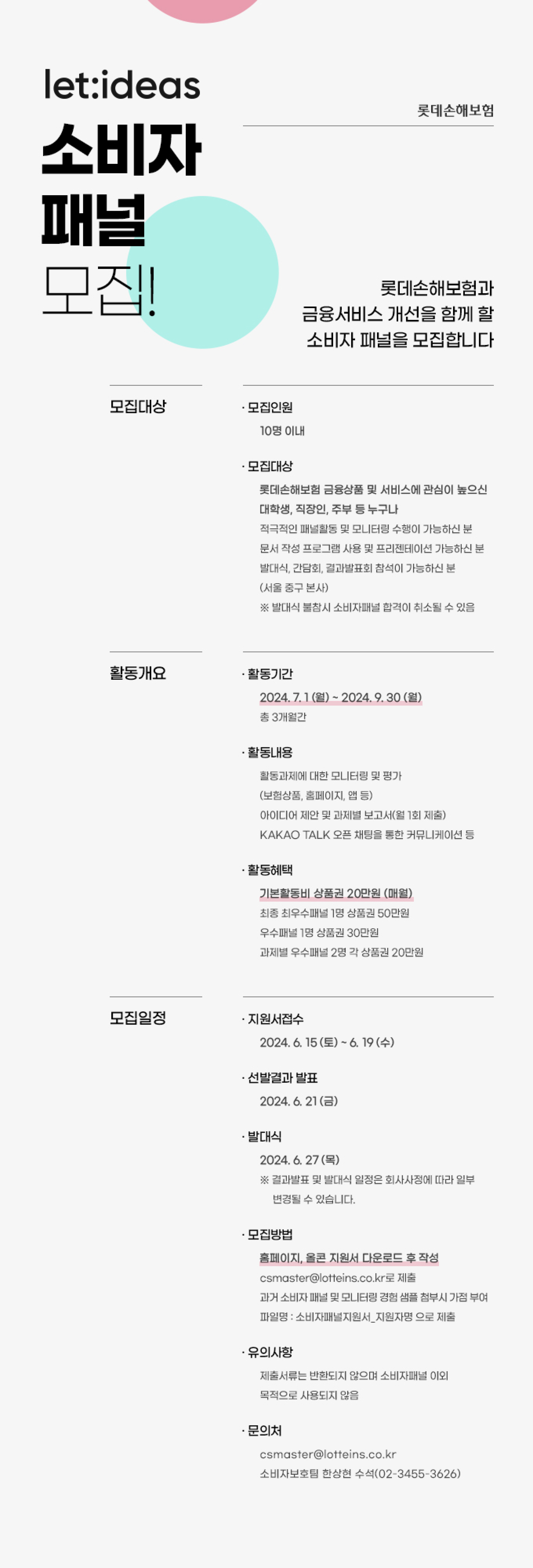 - 롯데손해보험과 금융서비스 개선을 함께 할 소비자 패널을 모집합니다.
