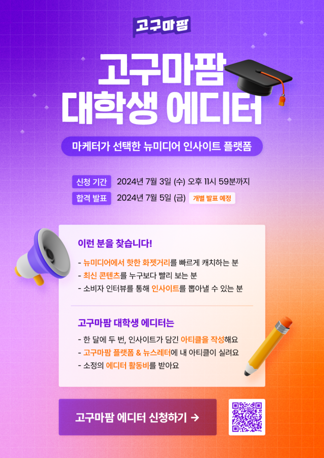 대학생의 목소리를 마케터에게 전달하고 싶어 대학생 에디터를 모집합니다.