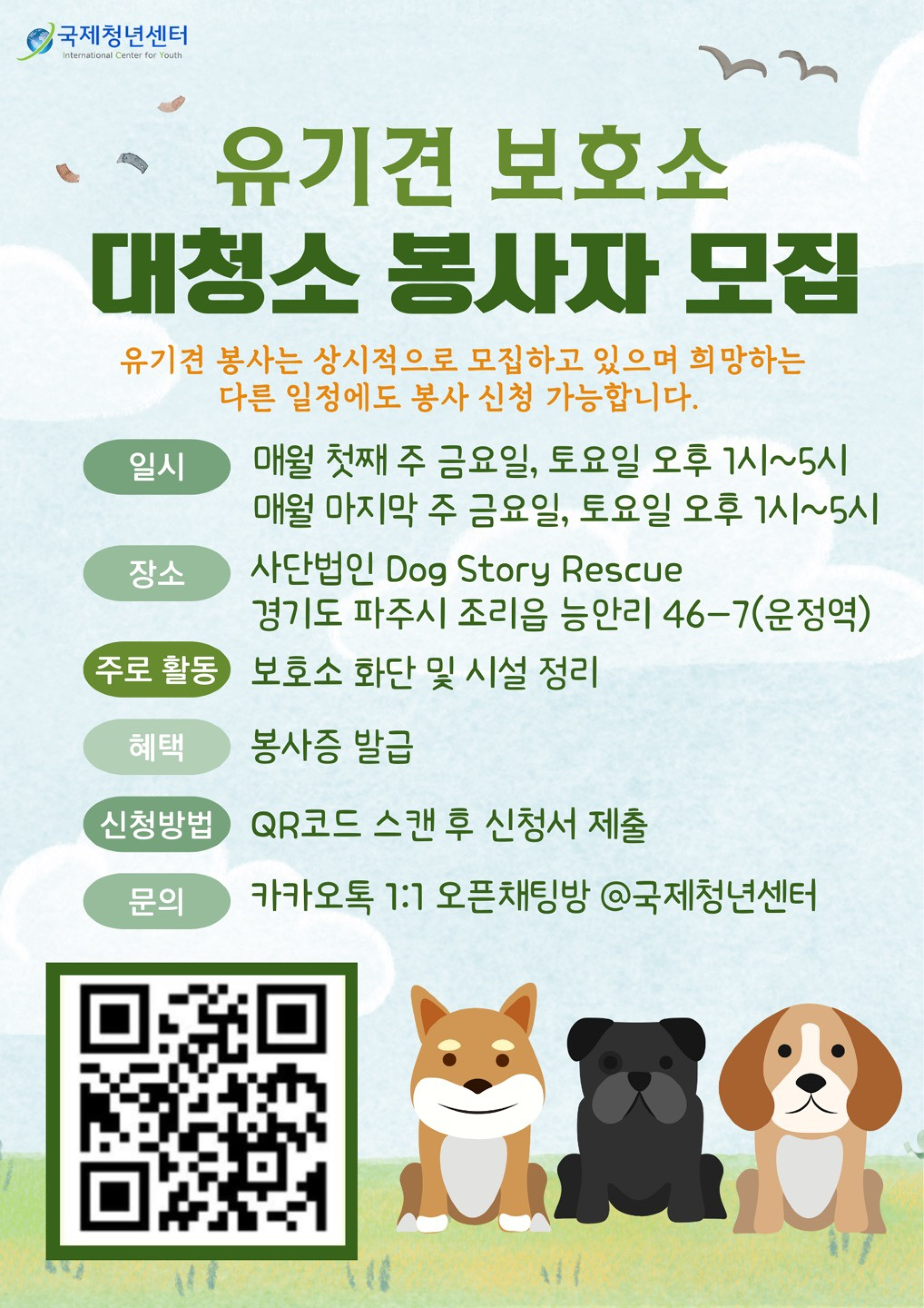 - 유기견 봉사는 상시적으로 모집하고 있으며