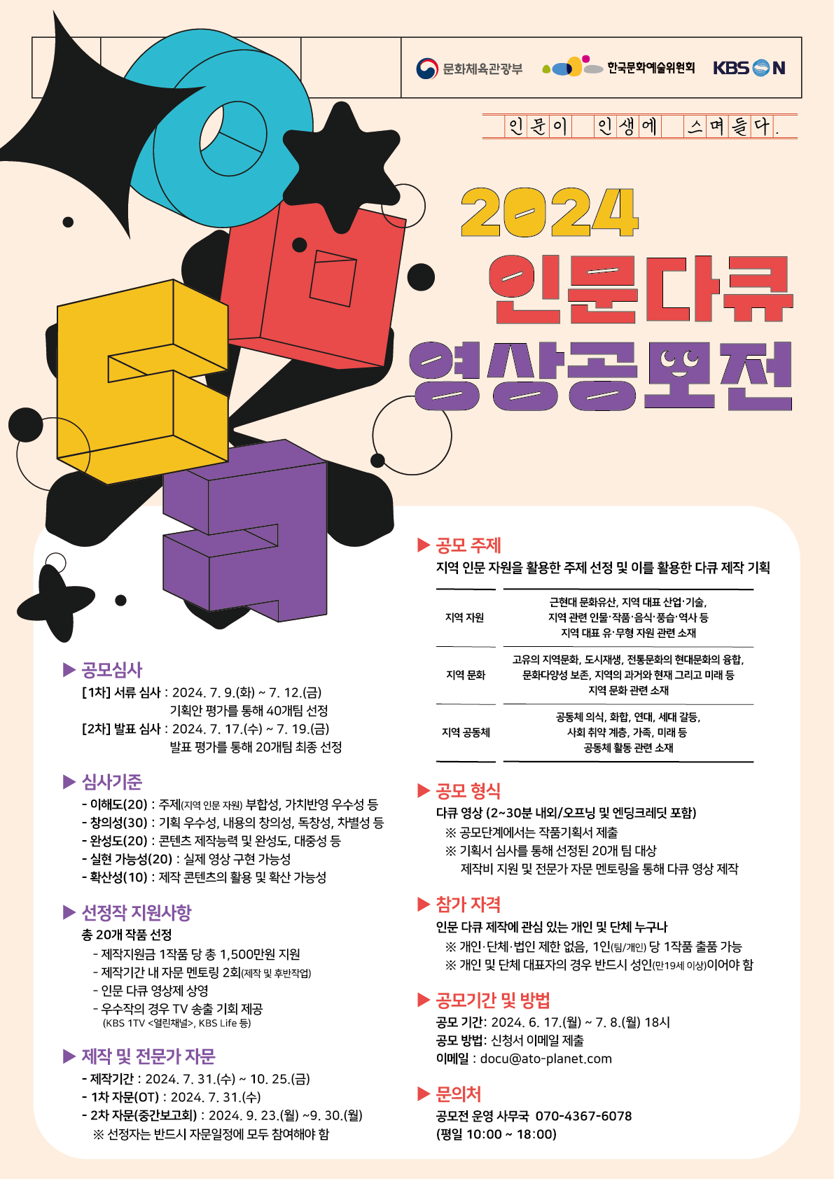 첨부파일 다운로드[공고문] 2024년 인문 다큐 영상 공모전.hwp