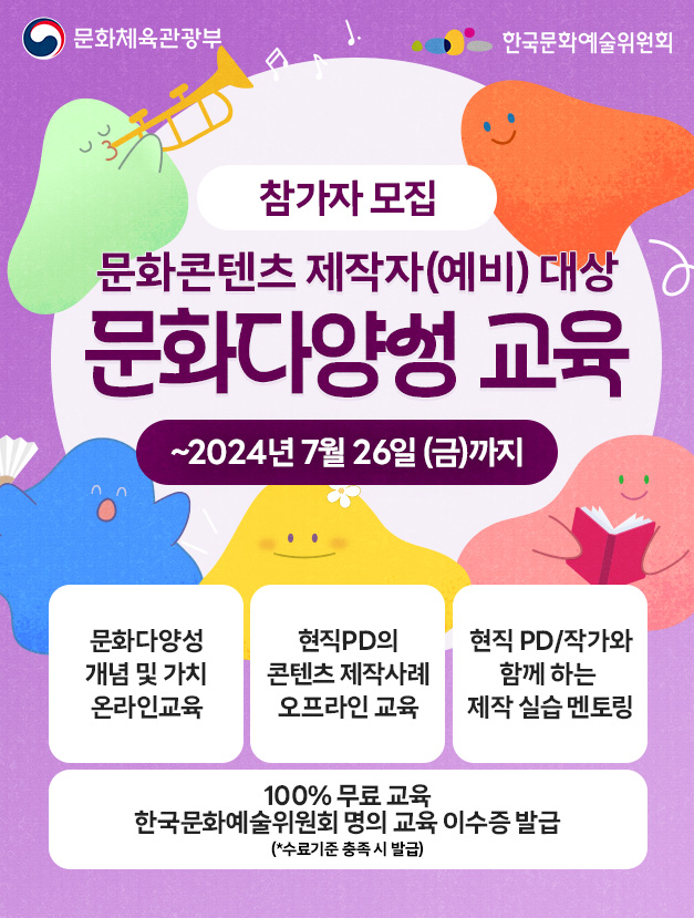 2024문화콘텐츠 제작자(예비) 대상 문화다양성 교육 모집