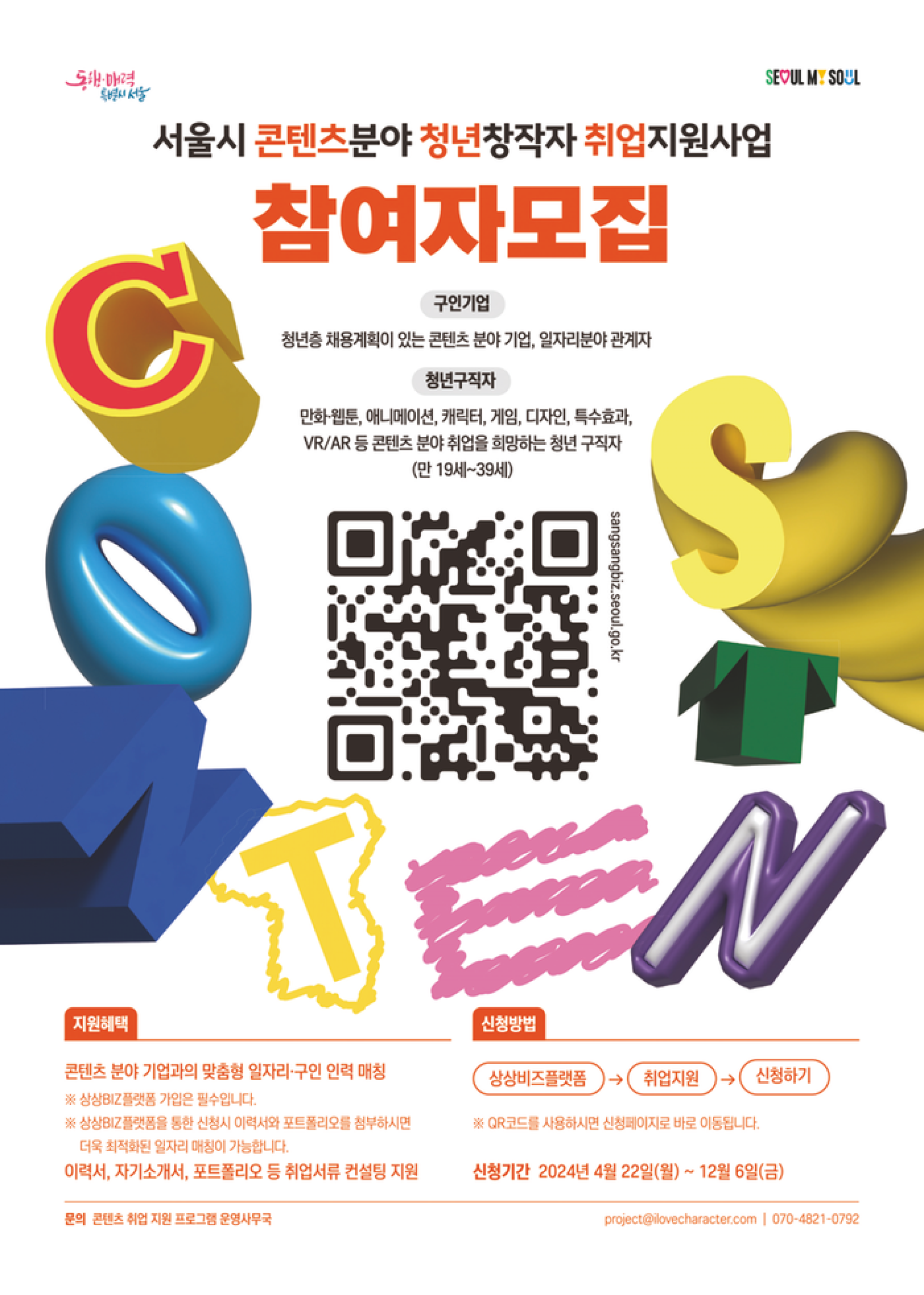 - 서울시에서 웹툰, 애니메이션, 캐릭터 등 콘텐츠 산업에서 일하고