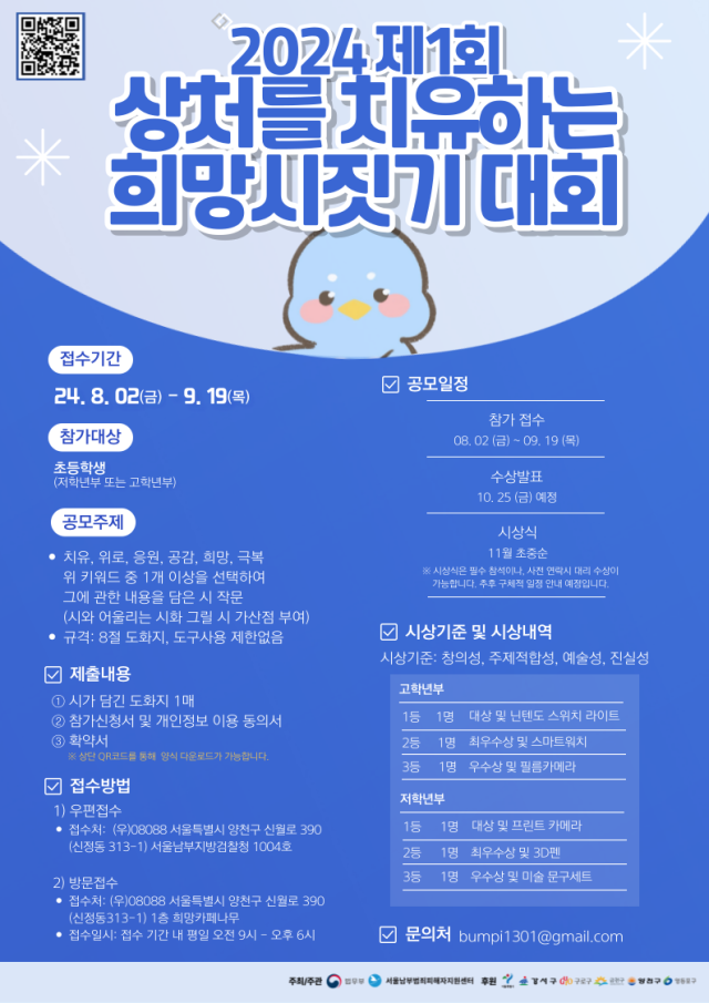 · 접수처: (우) 08088 서울특별시 양천구 신월로 390 1층 희망카페나무