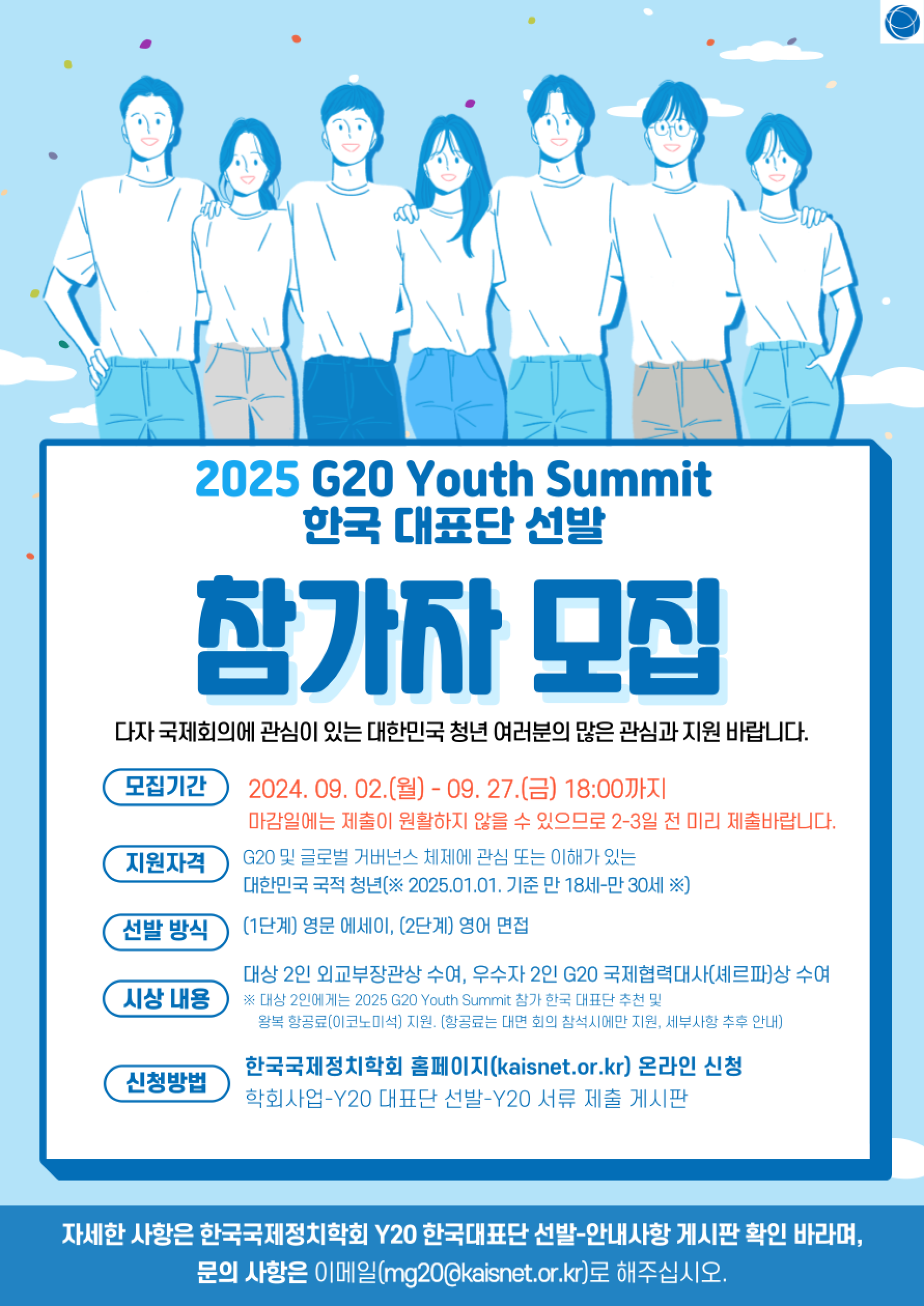2025 G20 Youth Summit 한국 대표단 선발 공고문
